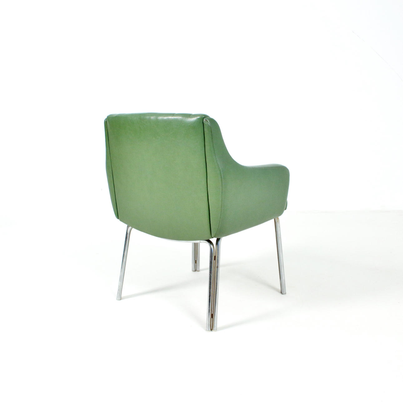 Small armchair from the 1960s/70s. Green vinyl, chrome.