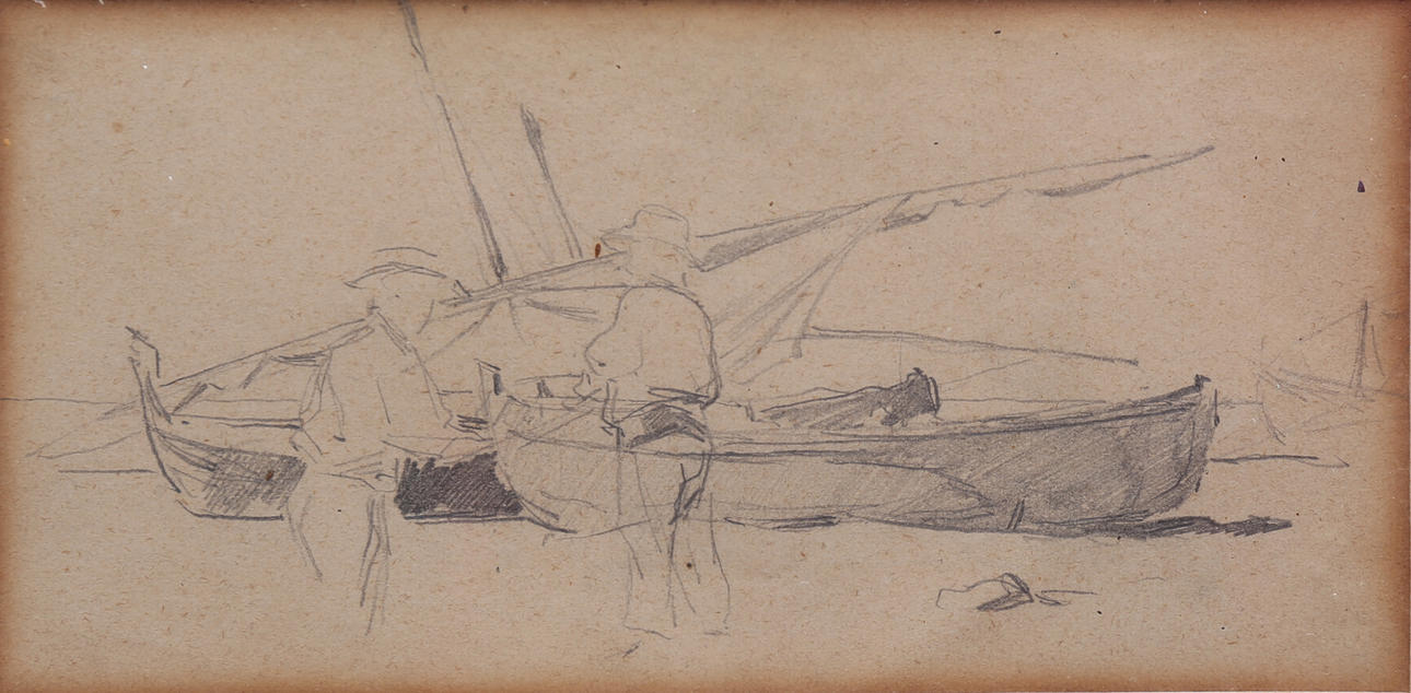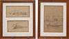 Three pencil and charcoal drawings on paper