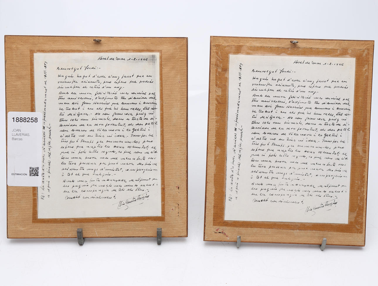 On the back, a photocopy of a letter from the painter's grandson, Lluis C. Llaverias