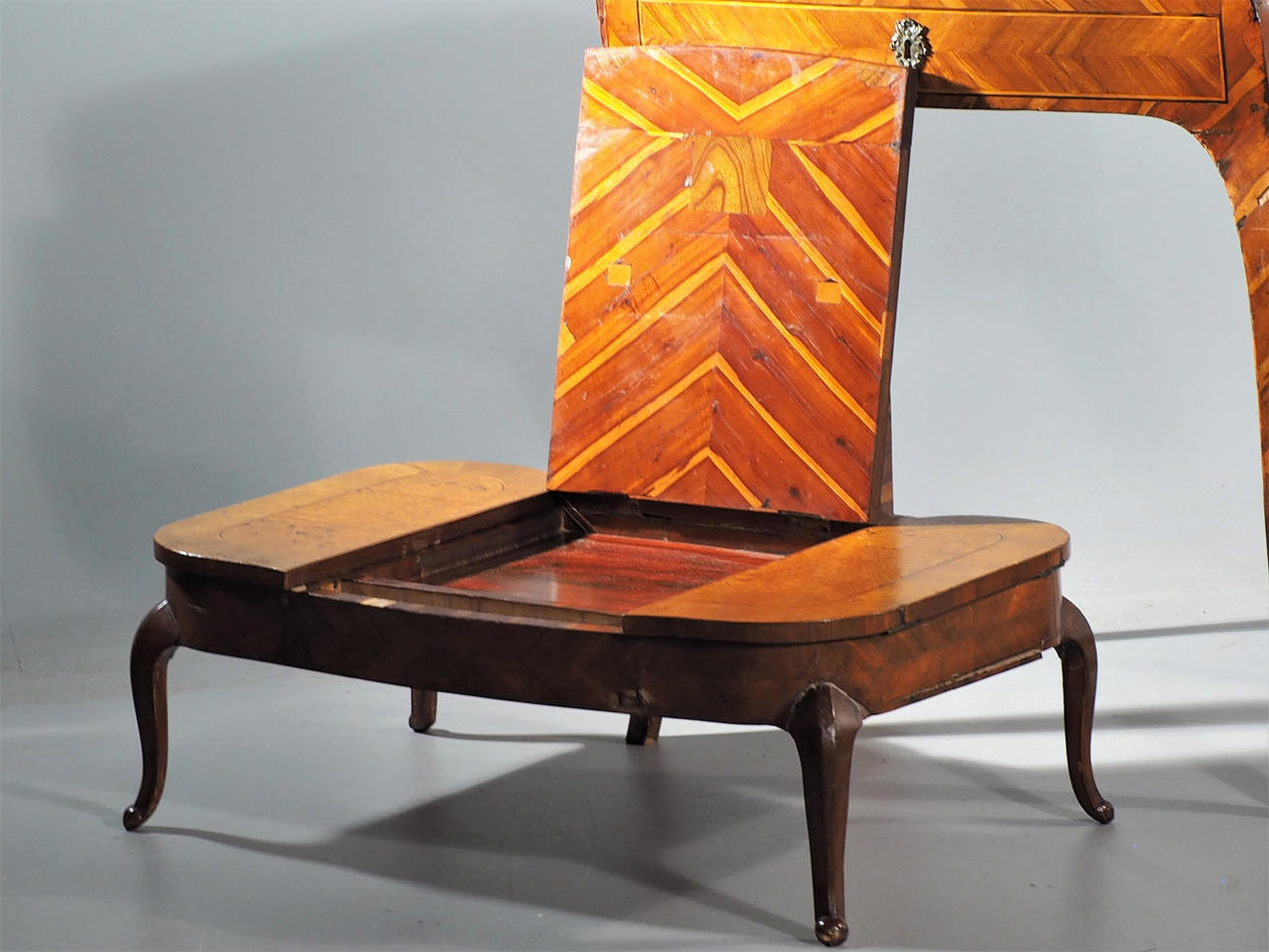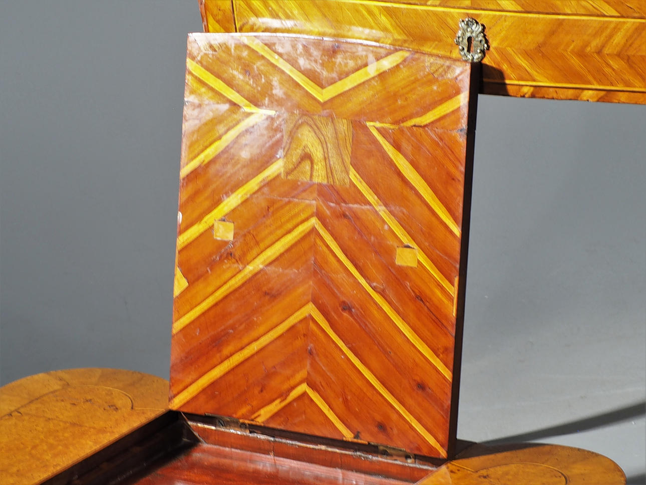Veneer damage, scratches, cracks. Lacks support for the writing disk Later key included.