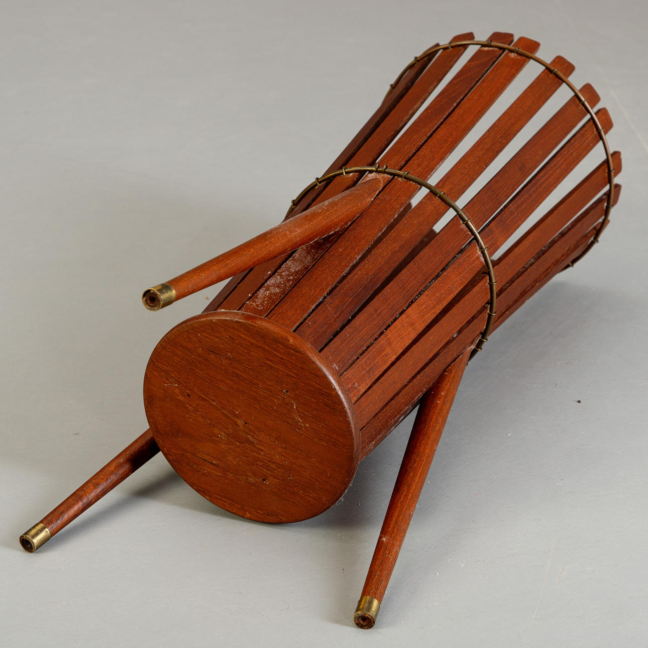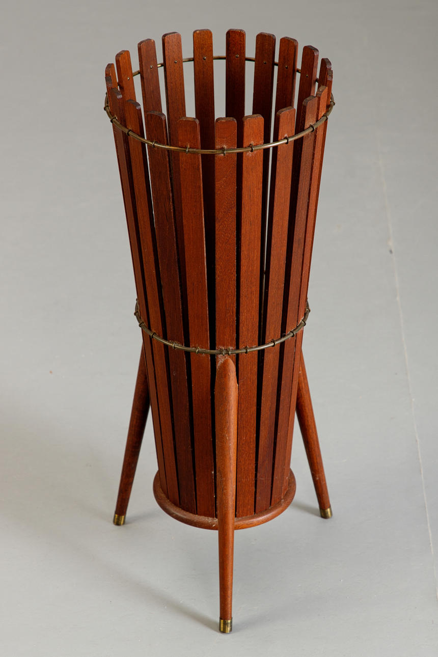 teak, brass. H. 60 cm, Ø 22 cm.