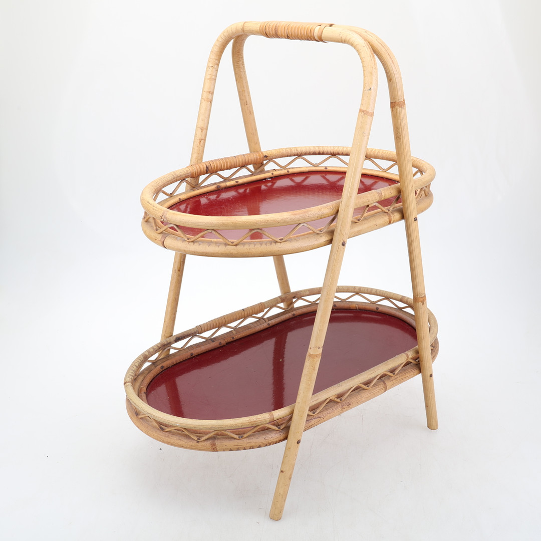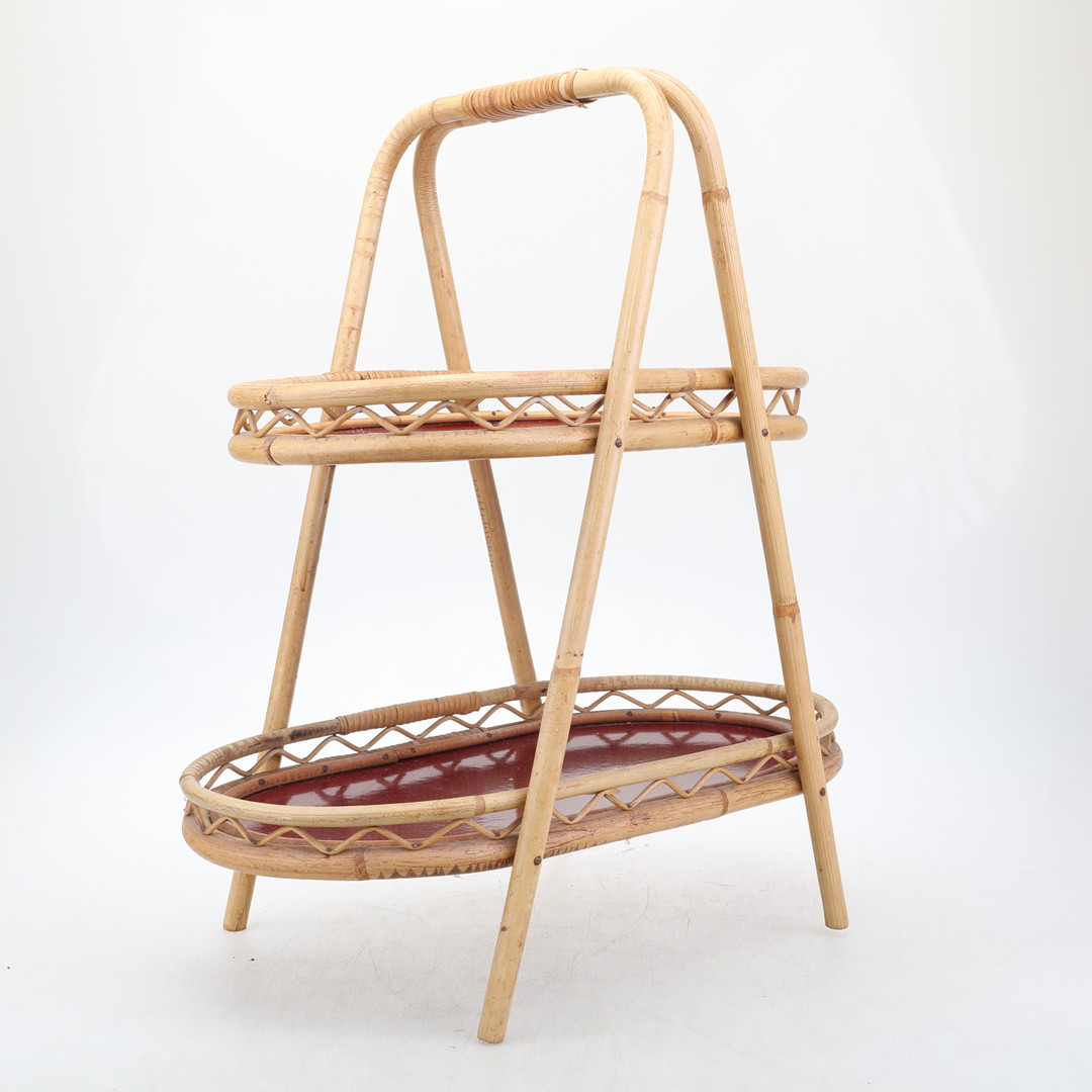 1895249. PLATE TABLE, rattan, 1950s.
