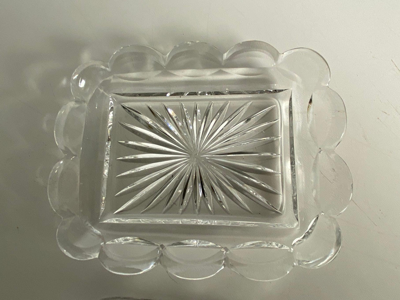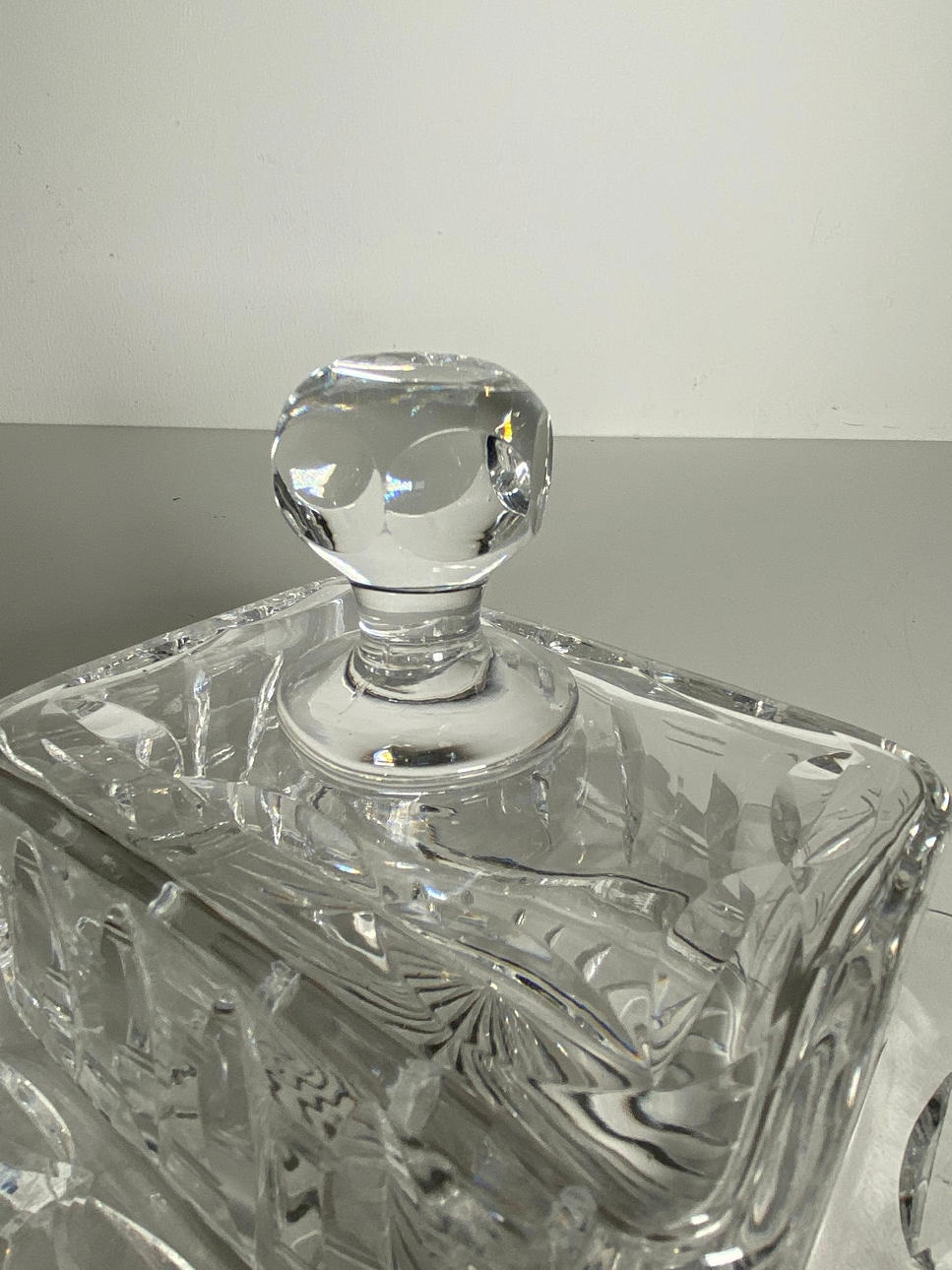 Lead crystal butter dish, approx. 1930 . Measurements: H. 14 cm. B. 20 cm. D. 15 cm.