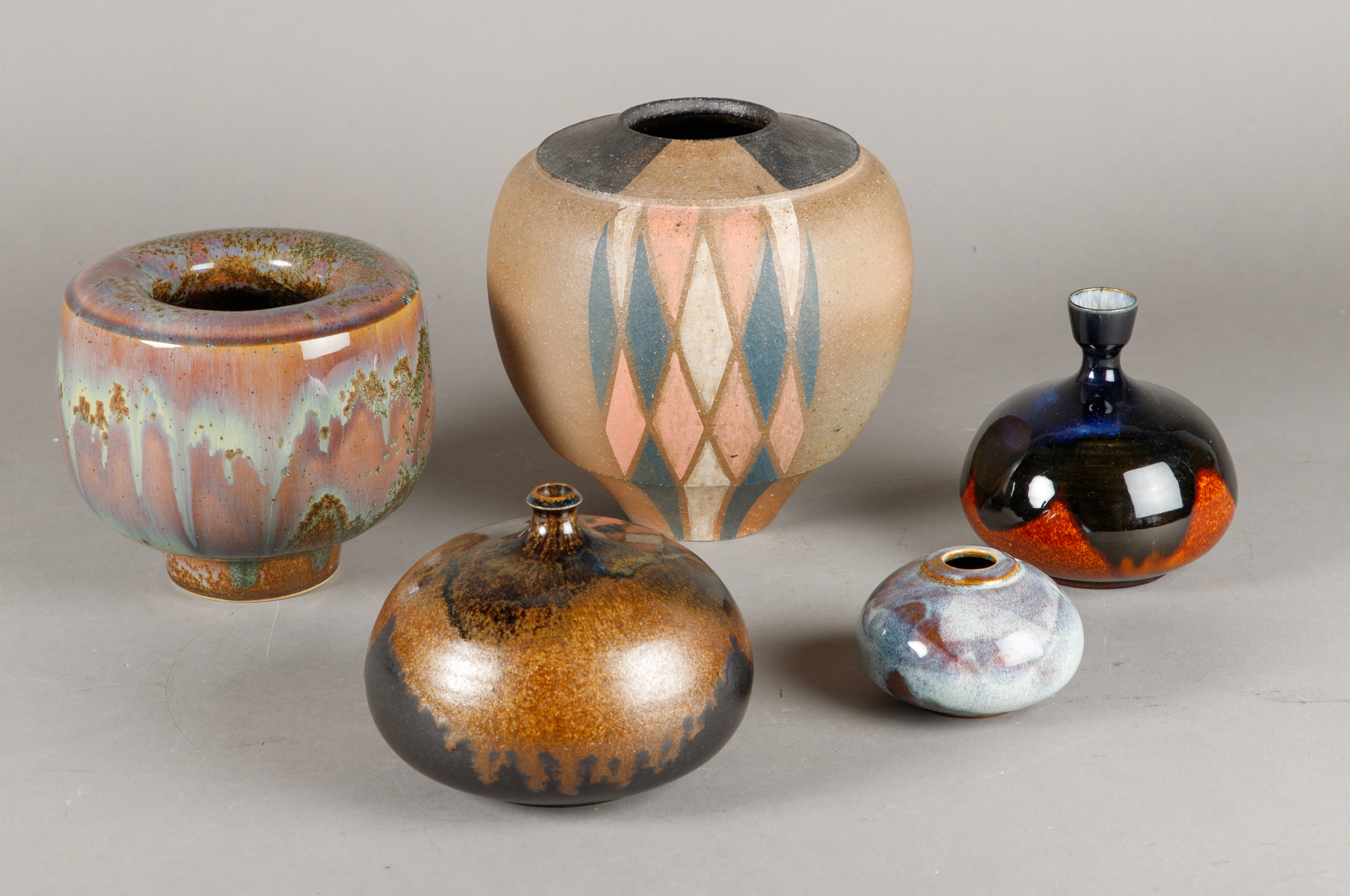1899024. KARIN & WALTER ZANDER. 5 studio ceramic vases.