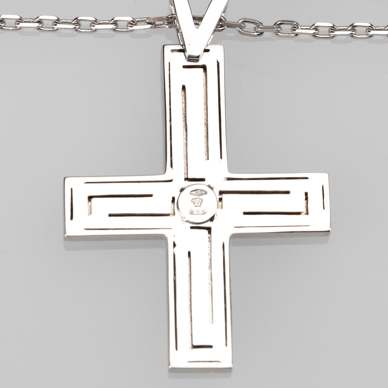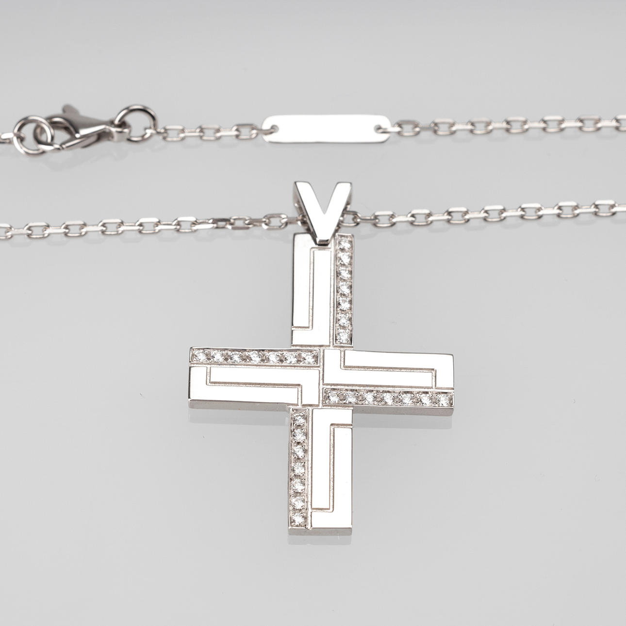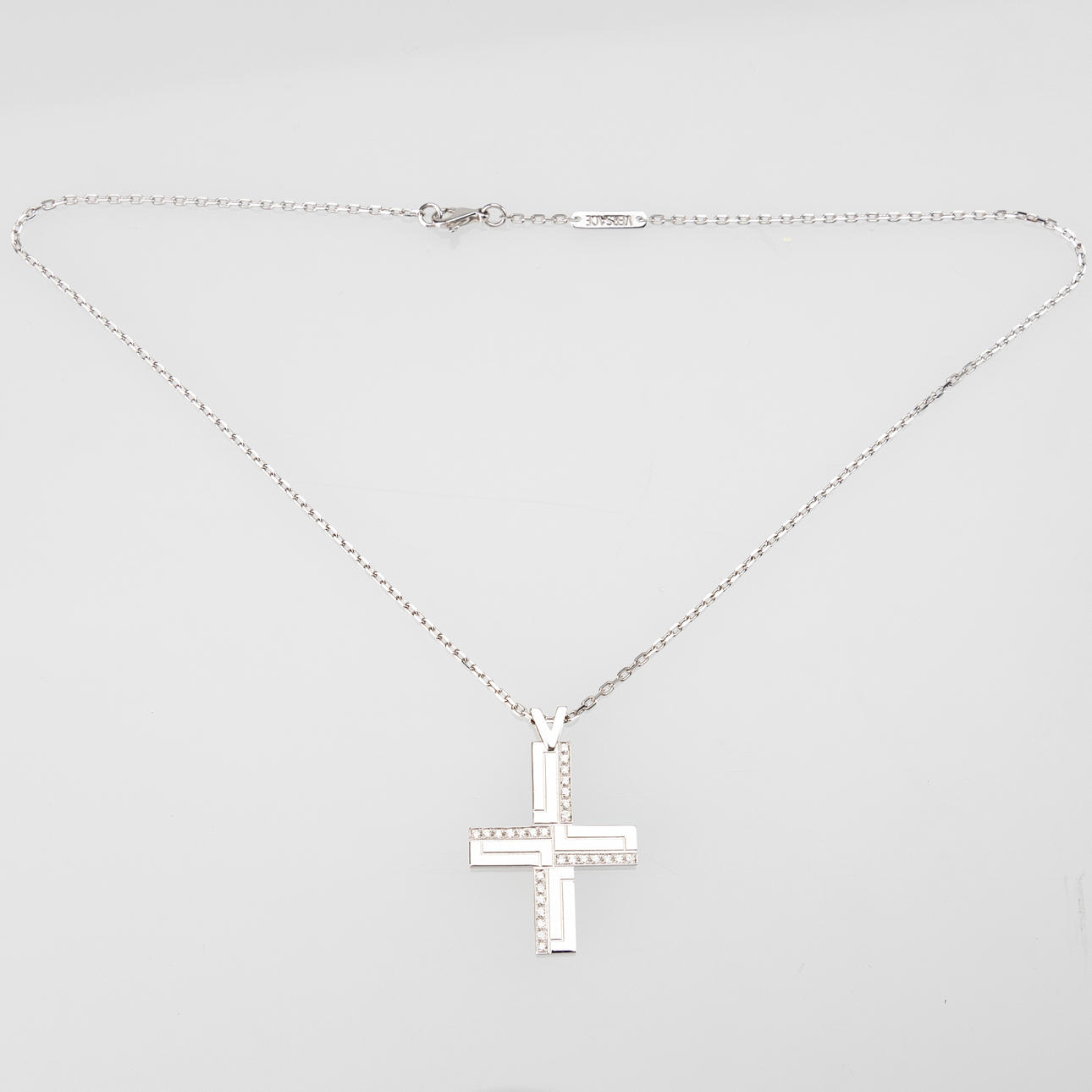 Brilliant-cut diamonds total approx. 0.40 ct, 18K gold, cross 37 x 29 mm, chain length 48 cm, total weight approx. 15.5 g, certificate.
