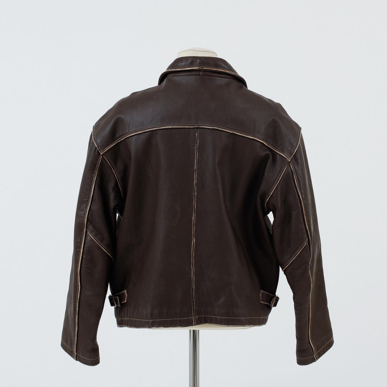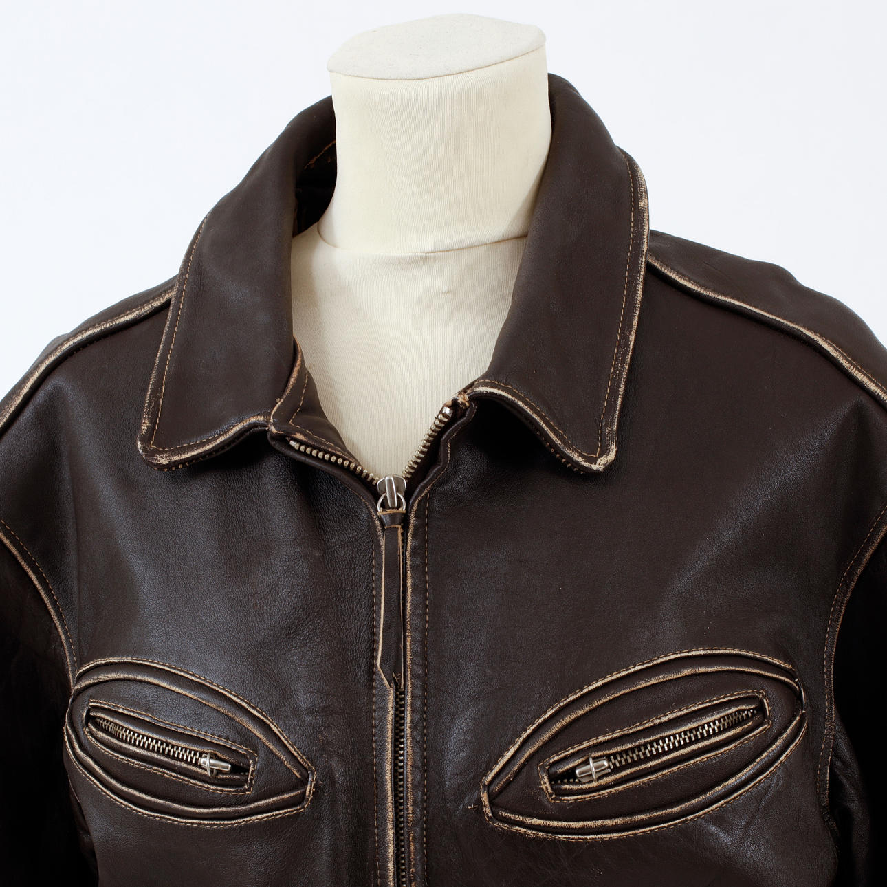 Vintage look in leather. Lined, zip-up jacket for men. 4 outer pockets with 2 zipped outer pockets. Labeled "Diesel". Size M according to label.