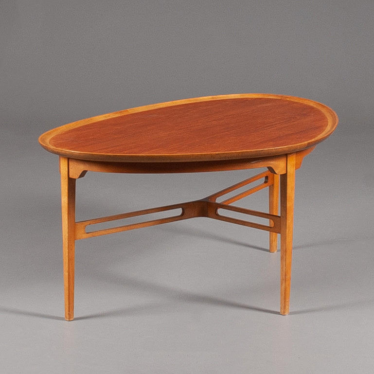 Kidney-shaped, cherry and profiled edge in beech.