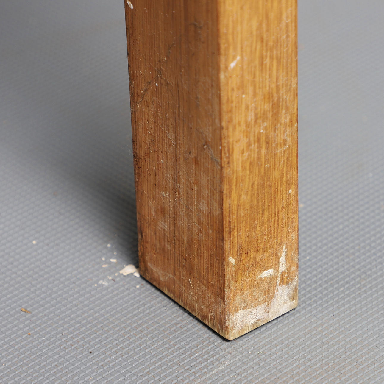 Age-appropriate signs of wear and abrasion, stronger wood abrasion, as well as partial nicks on the legs and slight stains on the surface.