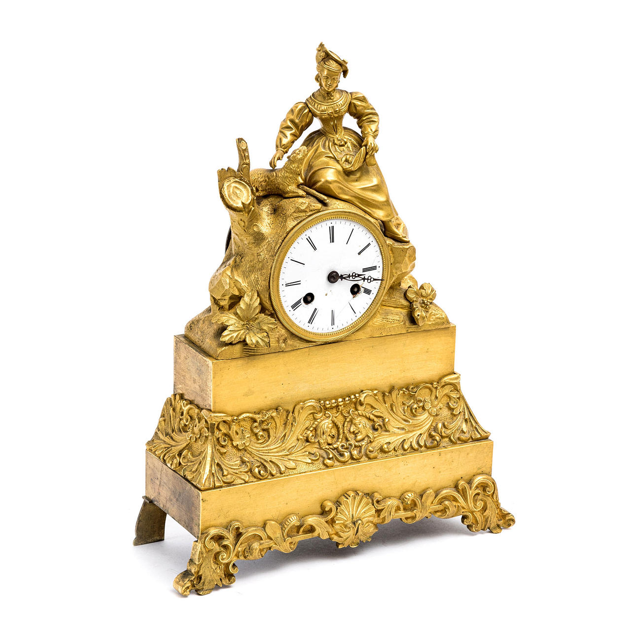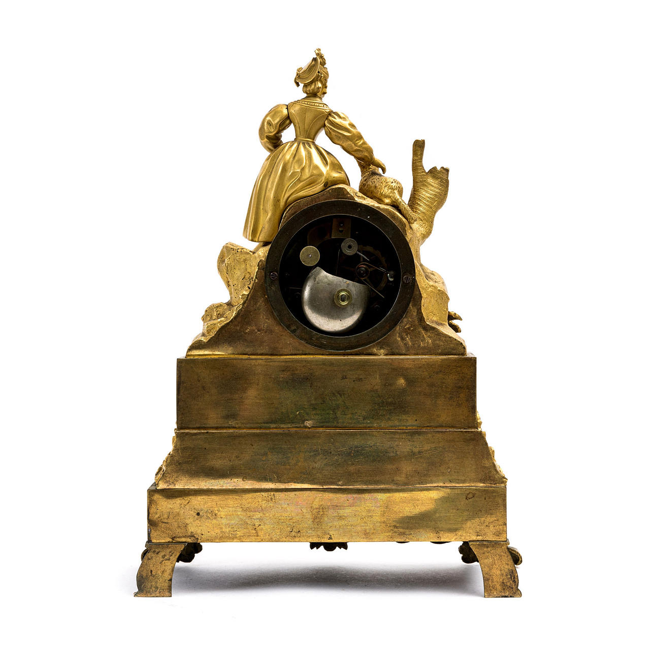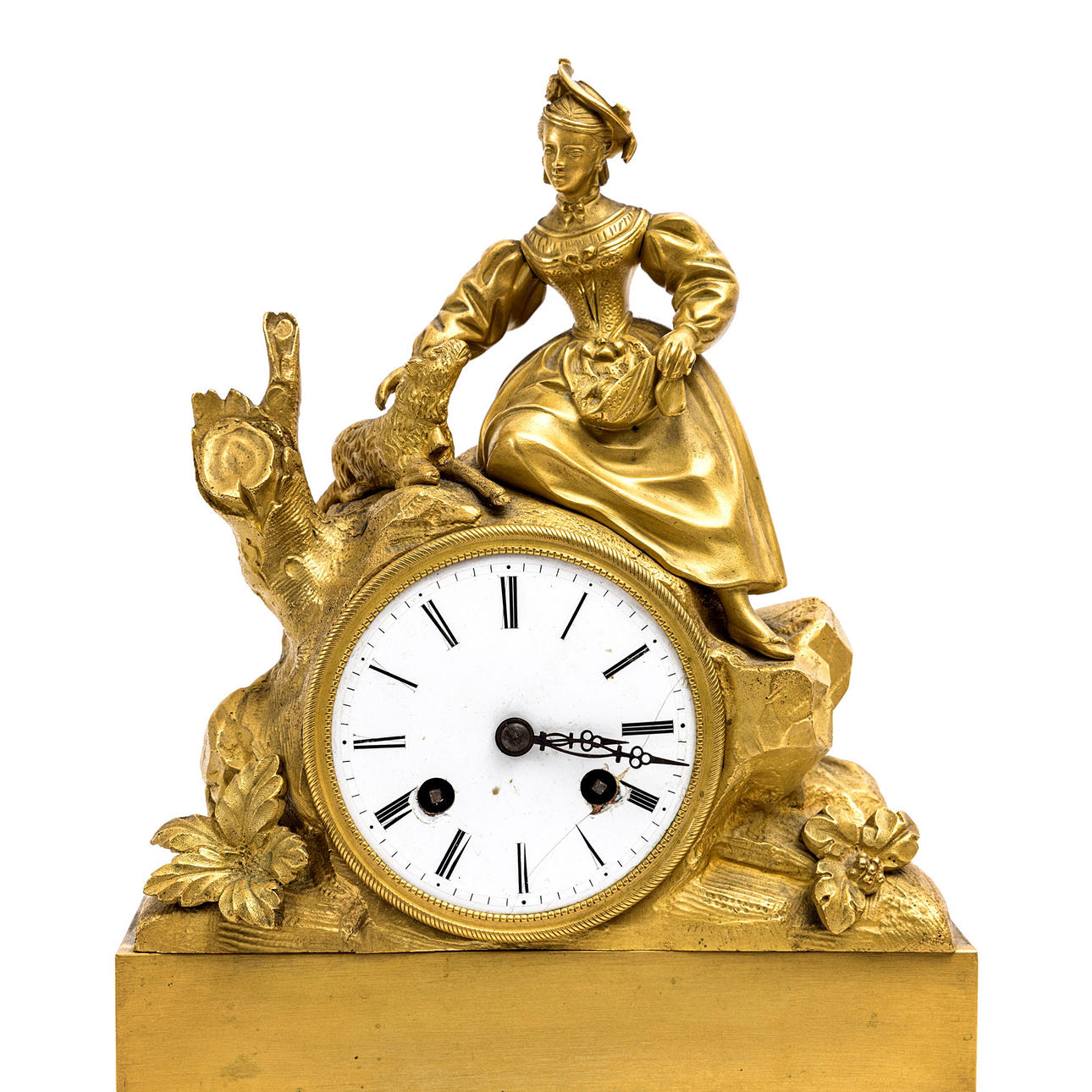 Crowned by woman with lamb. Enamel dial with Roman numerals. Width 26 cm, height 35 cm.