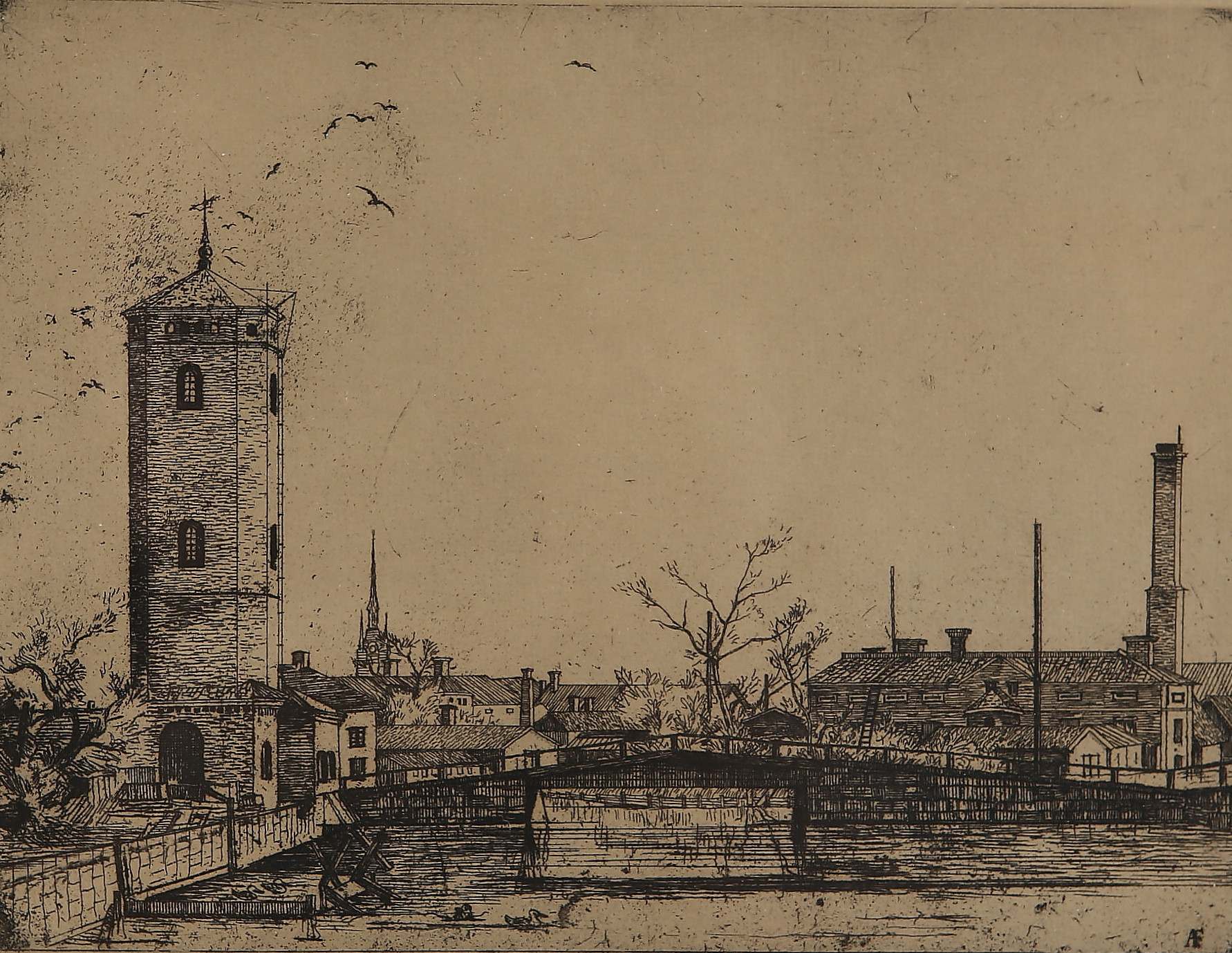1945370. AXEL FRIDELL. "Falu River", etching, signed, 1925.