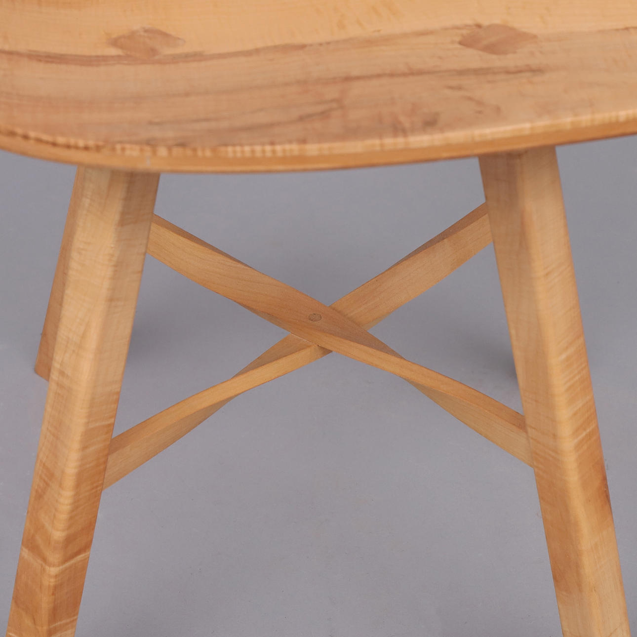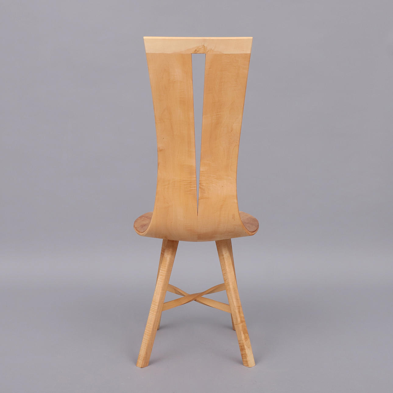 Chair in solid oiled maple on coupled leg position with openwork back. Designed and made by the furniture carpenter Calle Warfvinge. Supplied handwritten card with information from the carpenter. Signed and numbered 110.