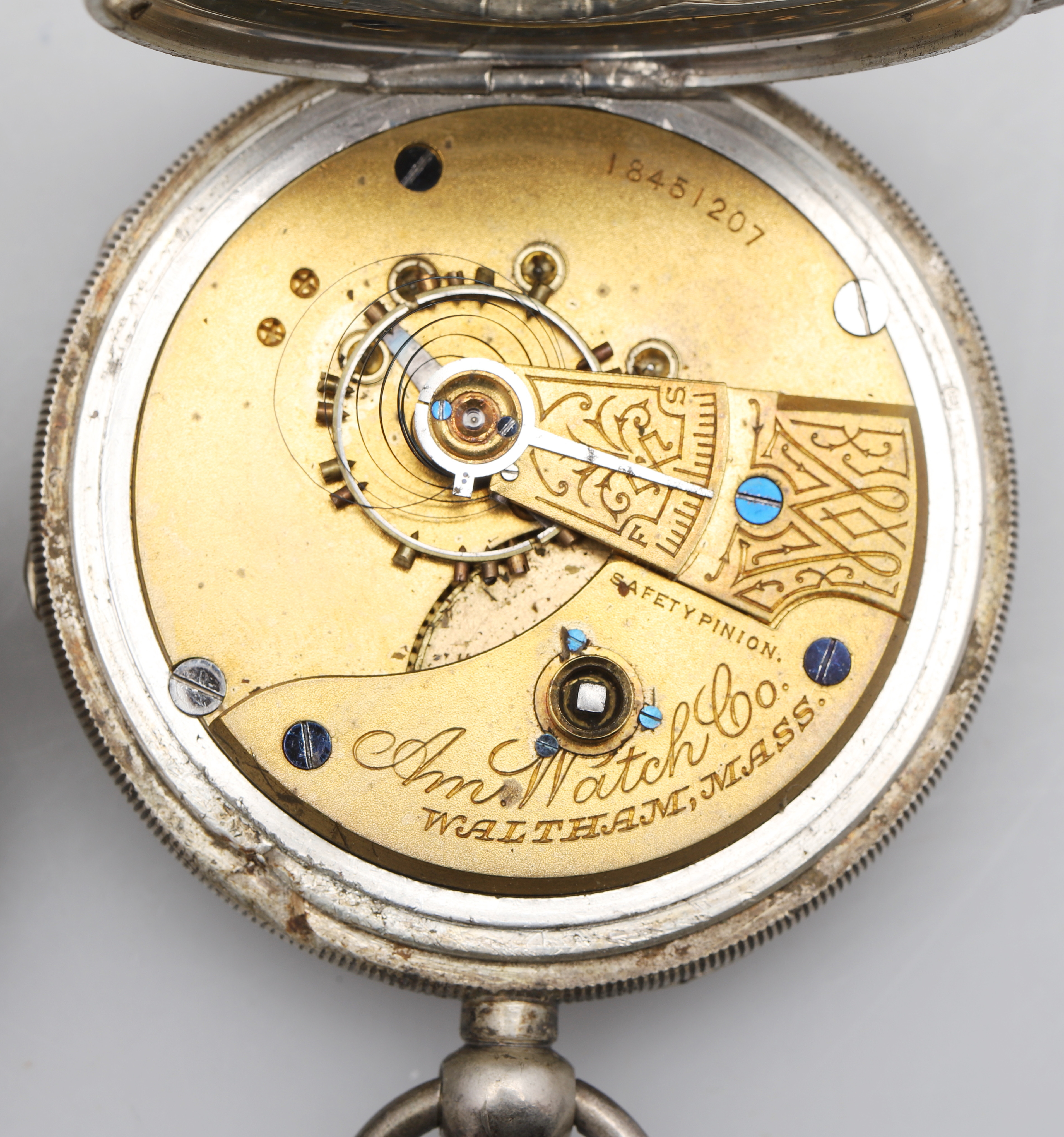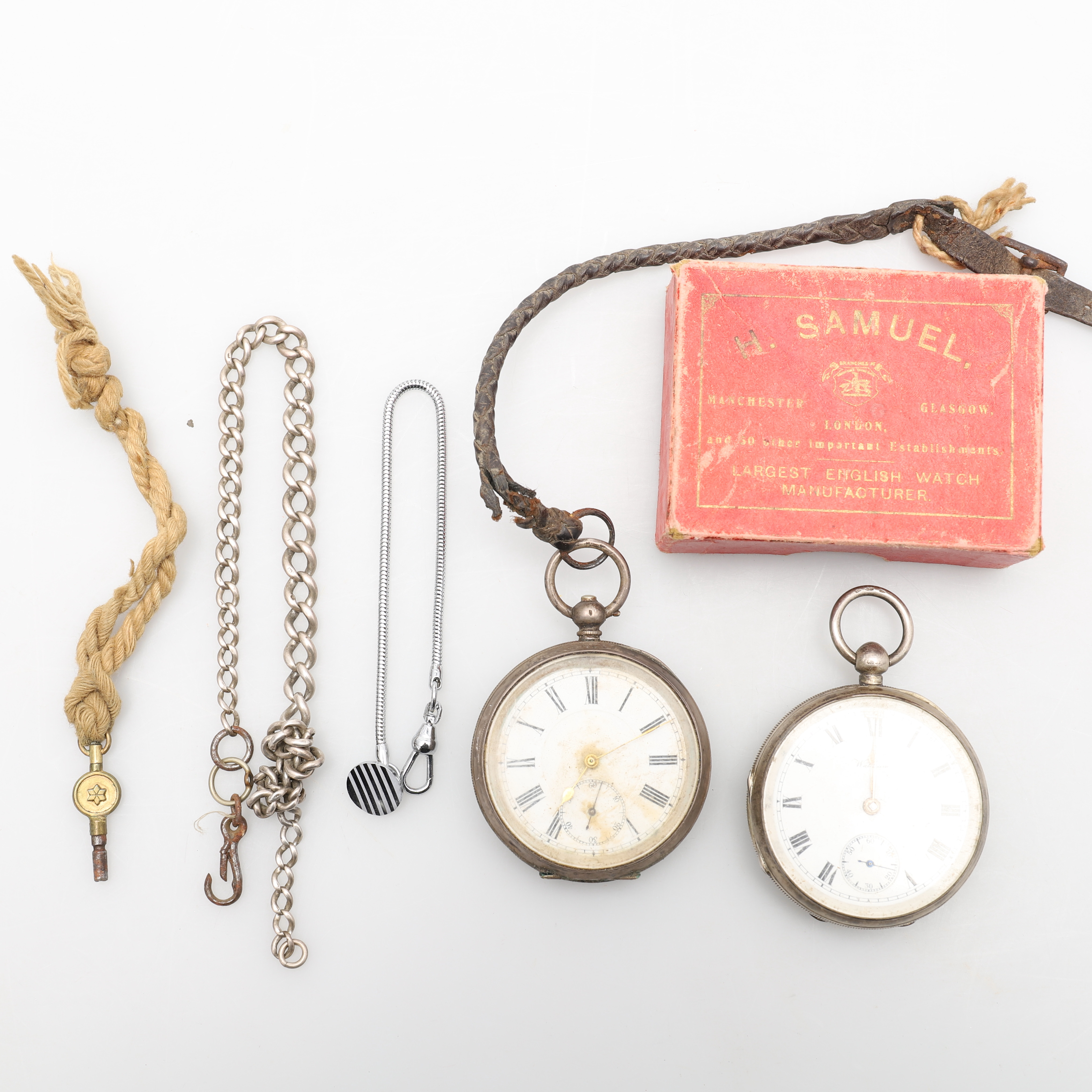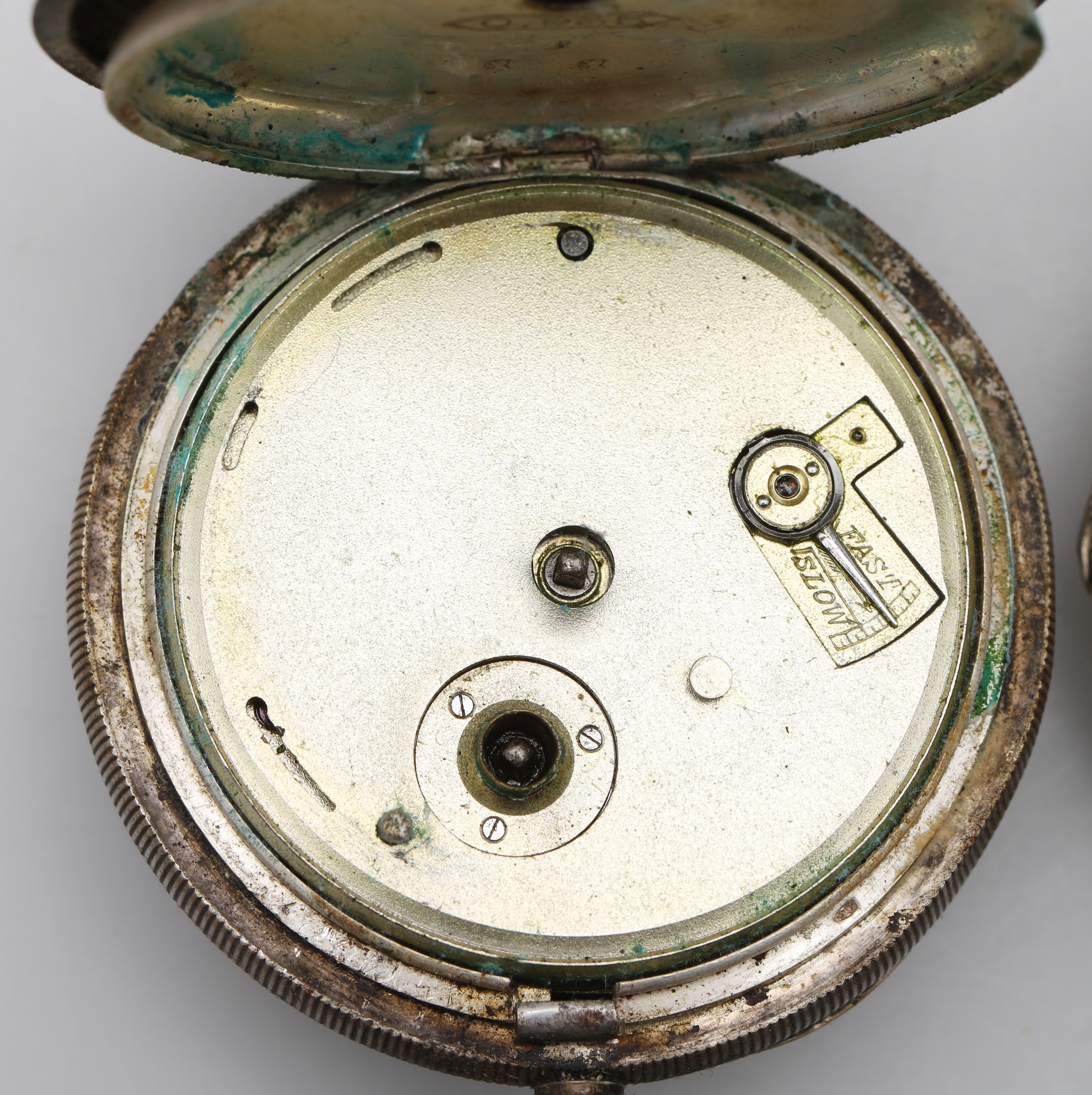 1948507. TWO SILVER CASED OPEN FACED POCKET WATCHES.
