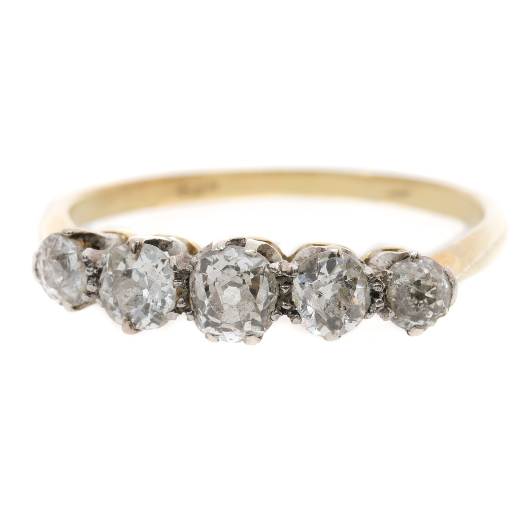 1948569. A FIVE-STONE DIAMOND HALF HOOP RING.