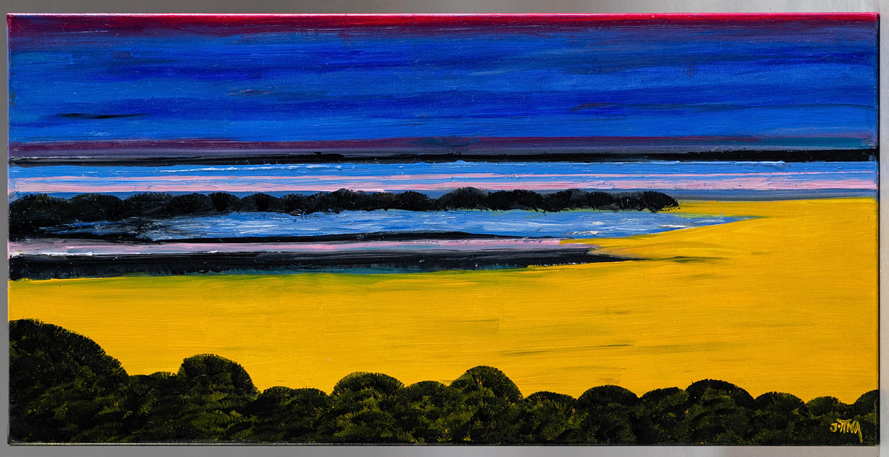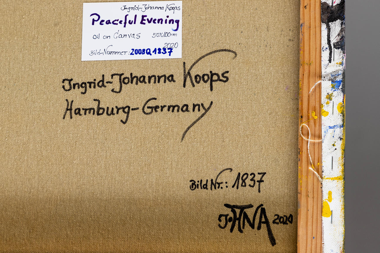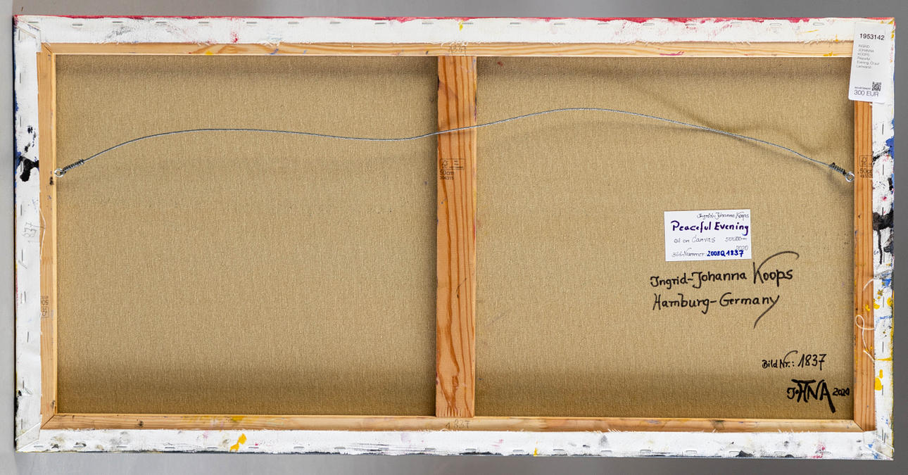 Ingrid Johanna Koops, Peaceful Evening, oil on canvas, 2020, signed, dated, numbered and titled on the reverse, approx. 50cm x 100cm.