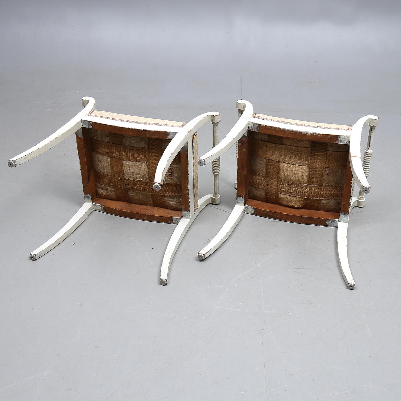 Later painted. Wear, color loss. Later upholstery with wear and stains.