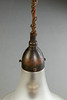 Design: 1920s. copper, glass. Upper shade in semi-matt, lower glass opaline catch. 1 flame. H. Shade 36 cm, Ø 24 cm.
