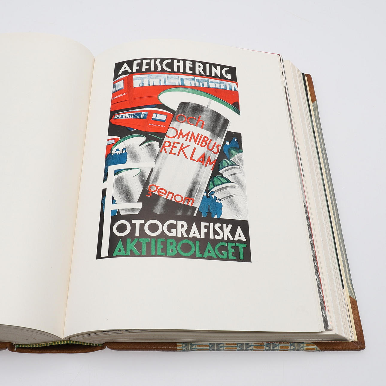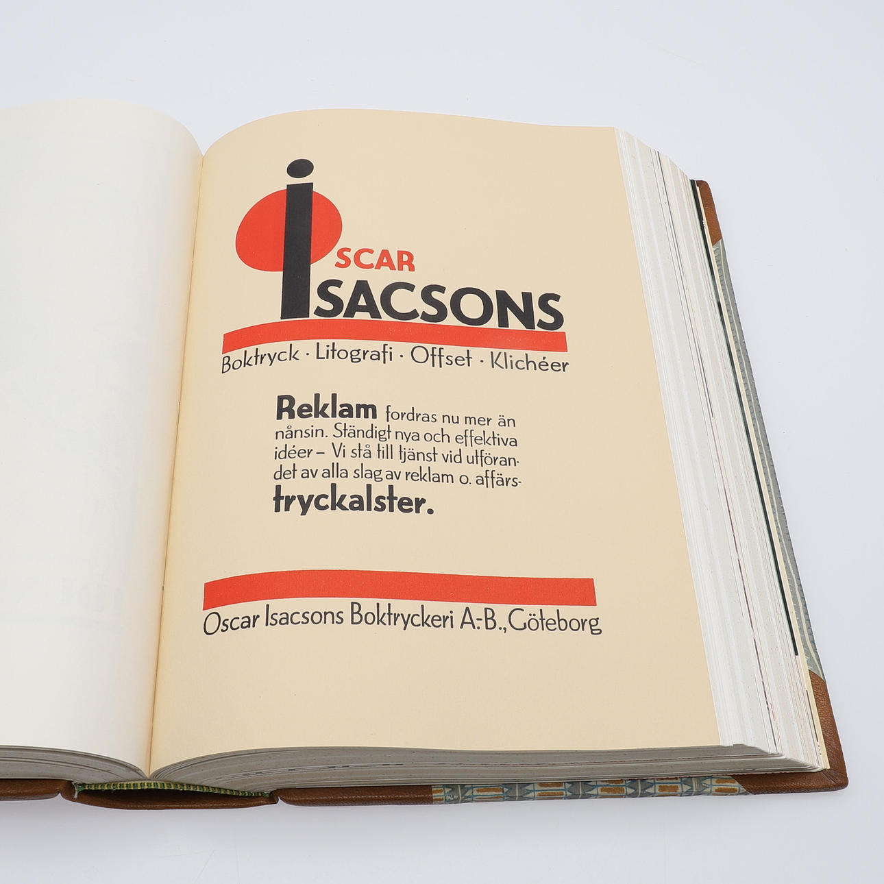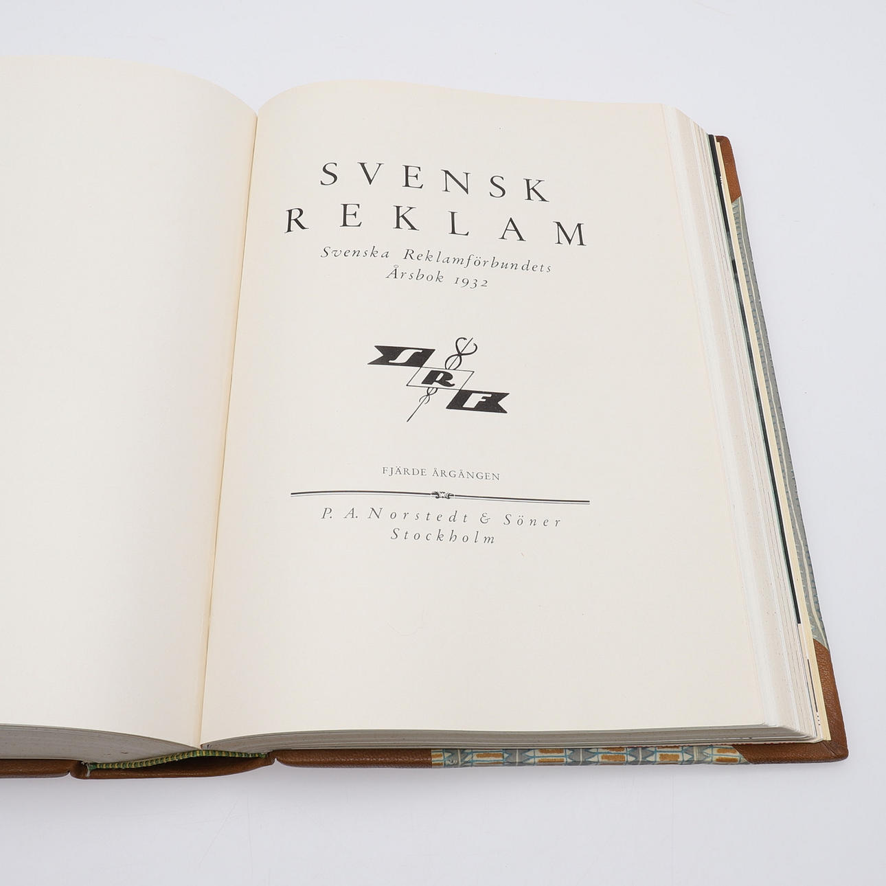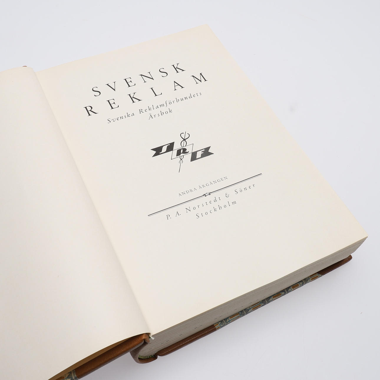 Advertising. Swedish advertising. The Swedish Advertising Association's yearbook for the years 1930, 1931 and 1932. in one volume. Second, third and fourth years. PA Norstedt & Söner, Stockholm, 1930-32. Folio in a well-bound brown half-morocco binding with blind decoration on the spine and covers. 164 p. + tablet appendix and 158 p. + tablet appendix and 178 p. + board appendix.