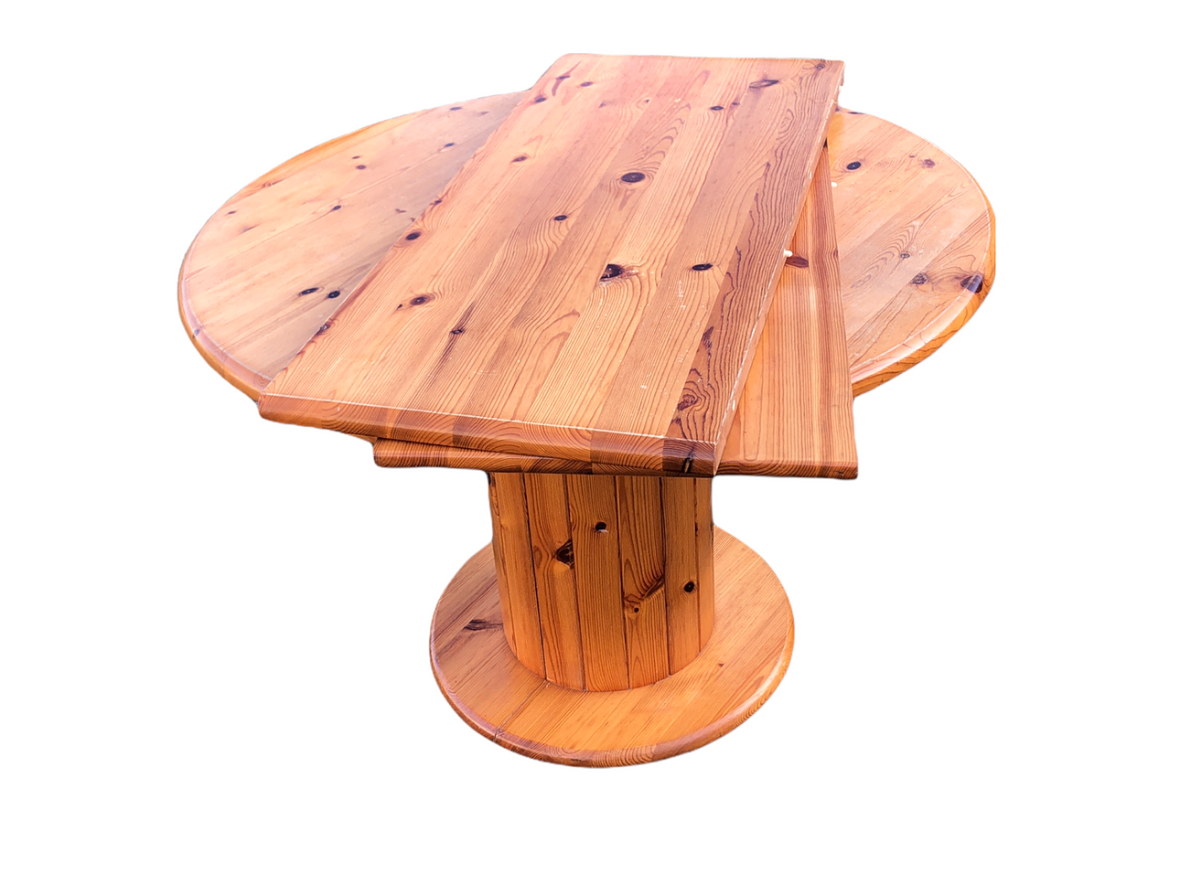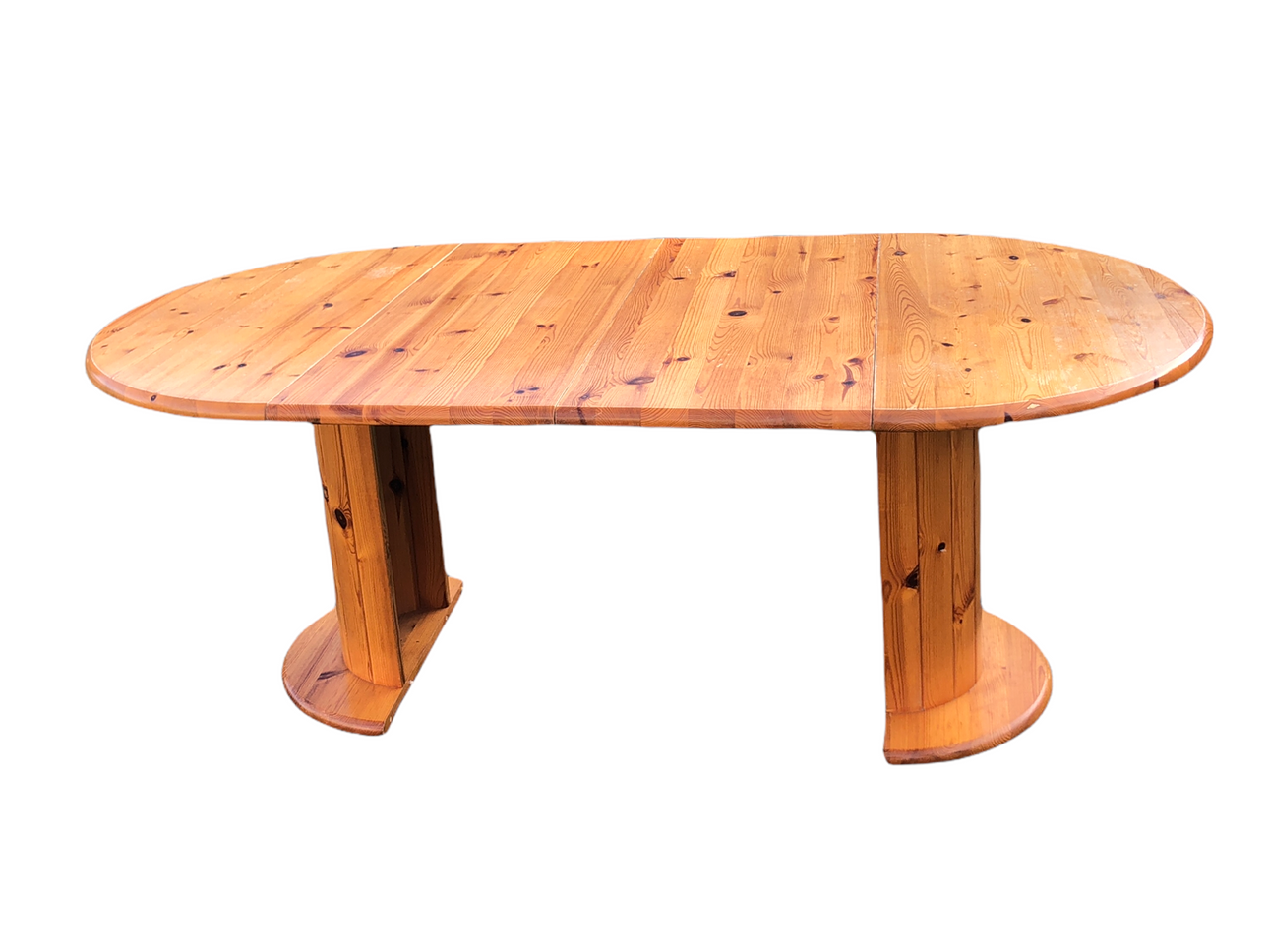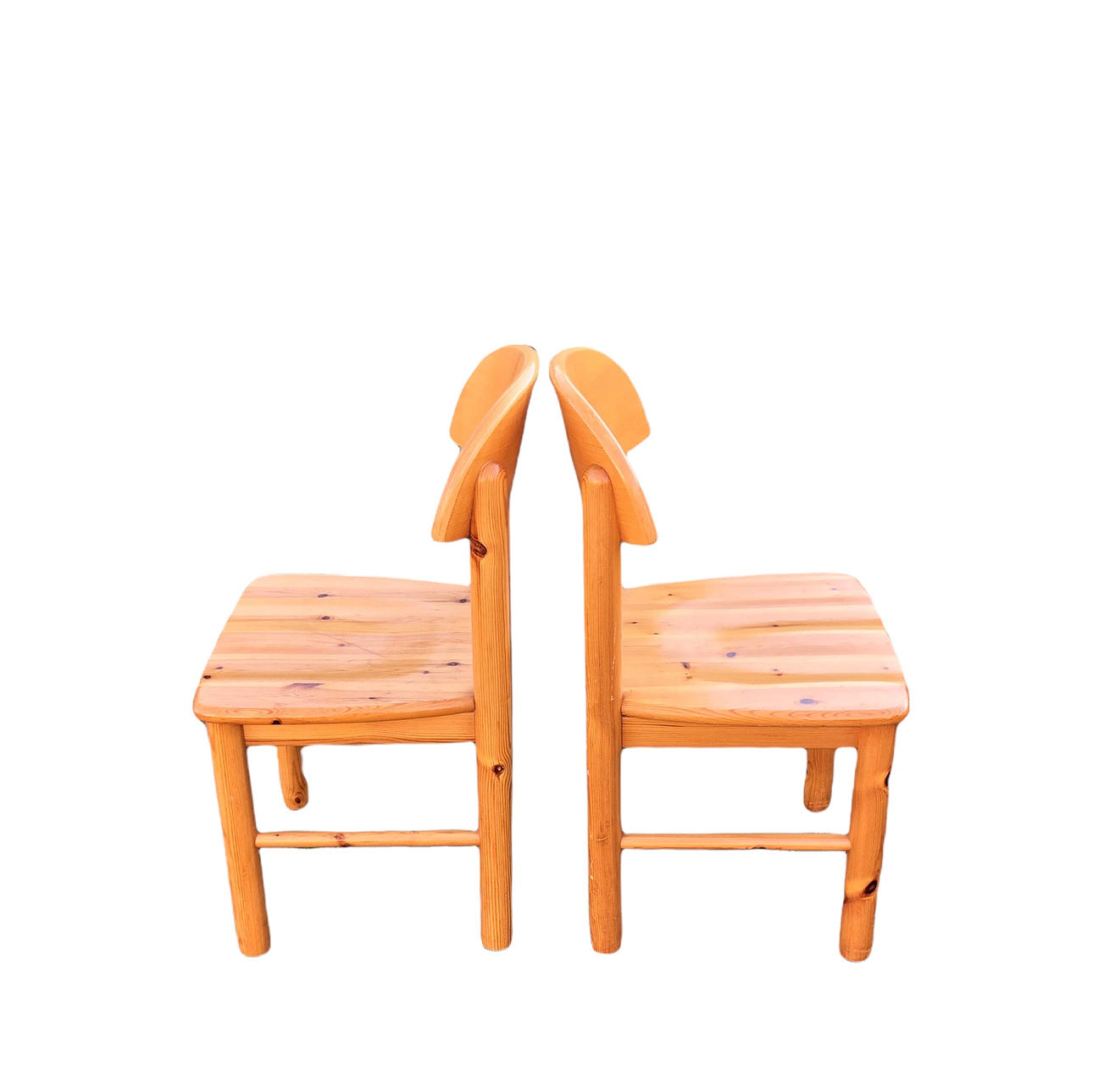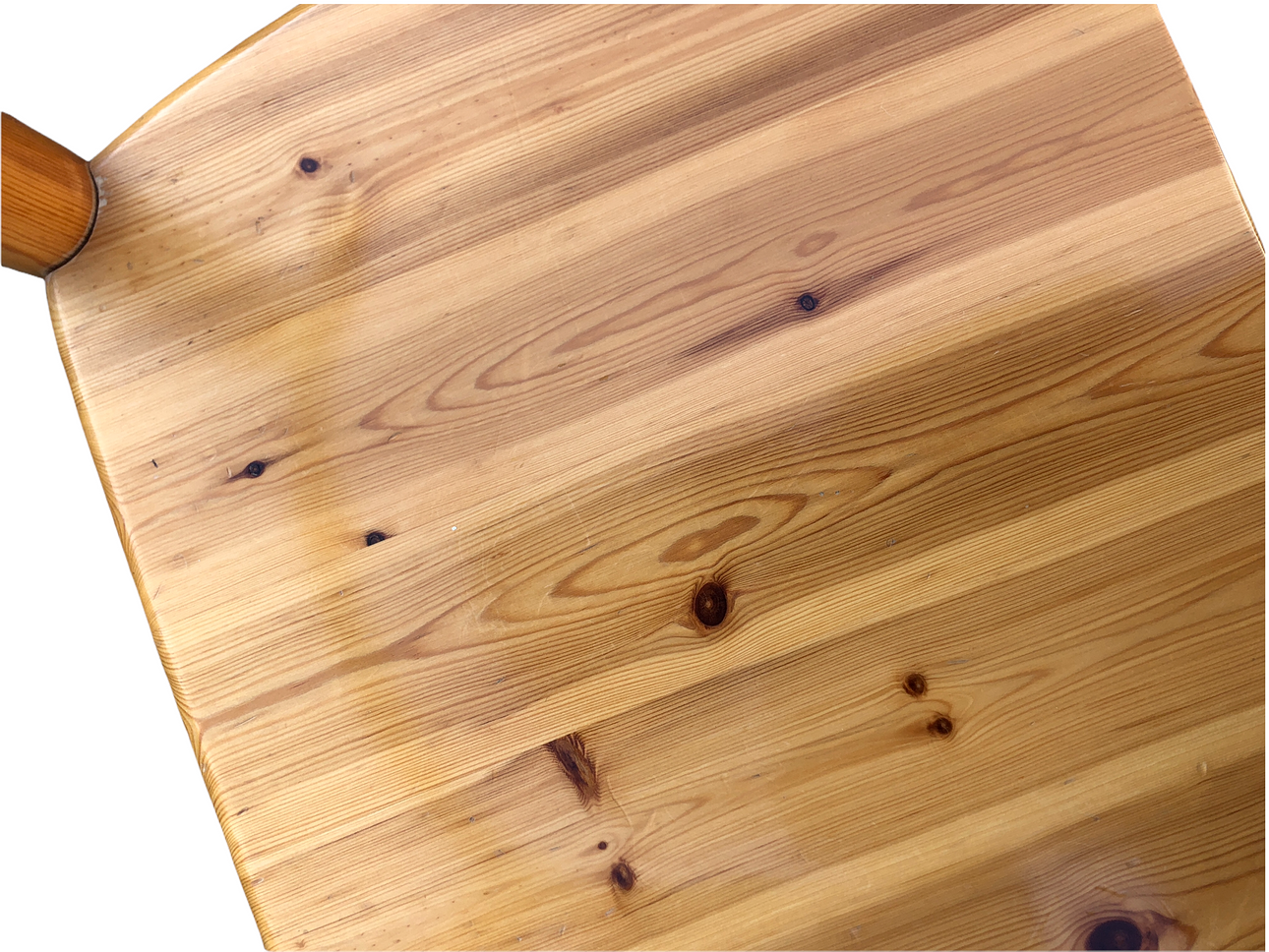 Chairs 1970s/80s, Danish design by Rainer Daumiller for Hirtshals Savværk. Construction made of solid pine wood with clear varnish and ergonomically designed seat. In addition round / oval dining table.