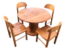 Approximate dimensions: Table: H.74.5 cm, Ø: 106 cm, + 2 panels (42x45 cm) Chairs: H. 87 cm, W. 49.5, D. 50 cm.