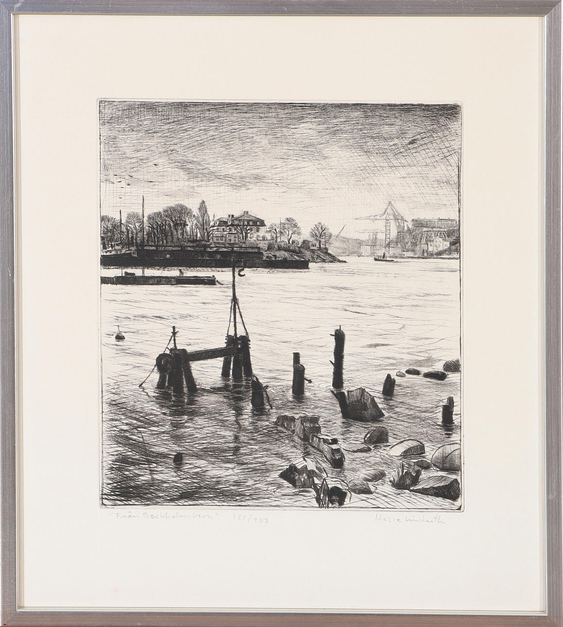 HASSE LINDROTH. "From Beckholmsbron, Stockholm", etching, signed.