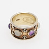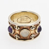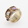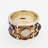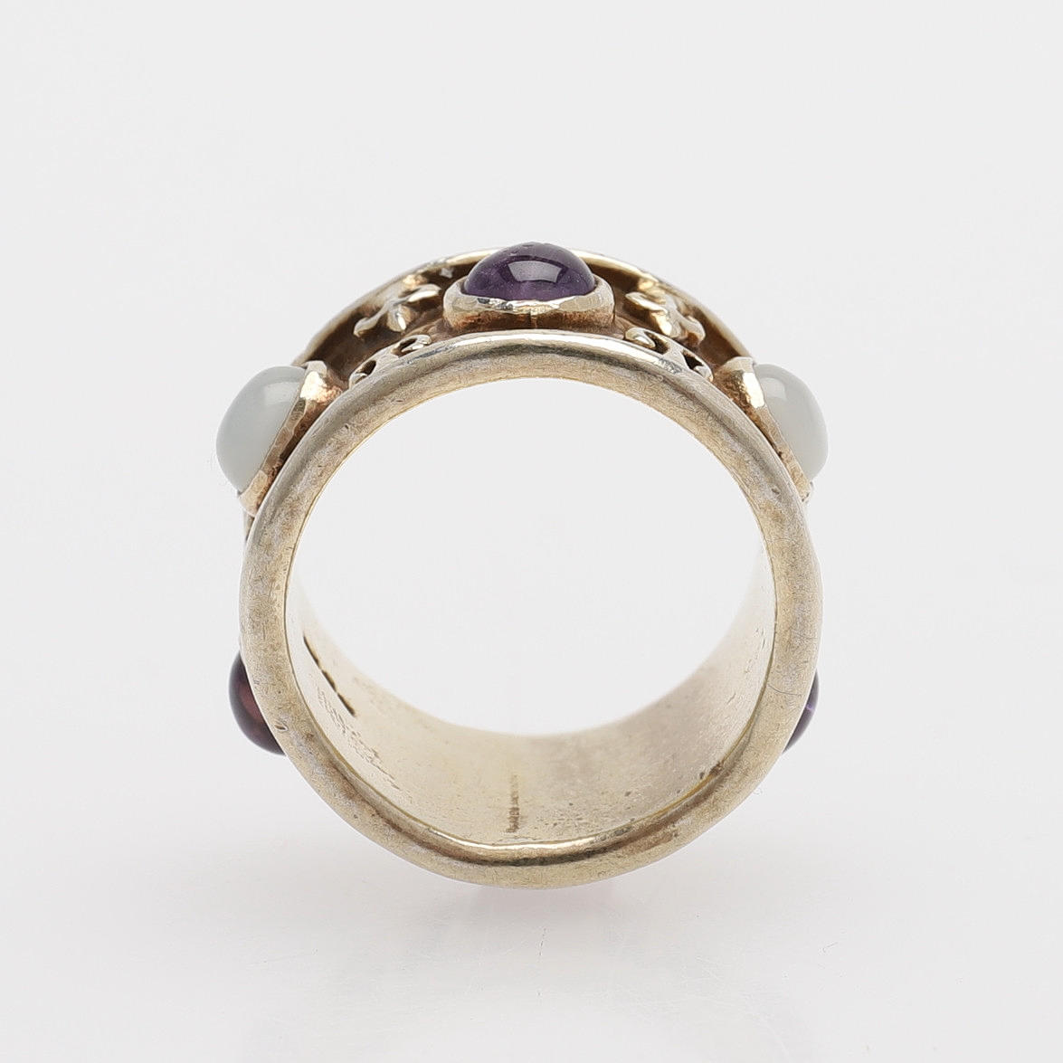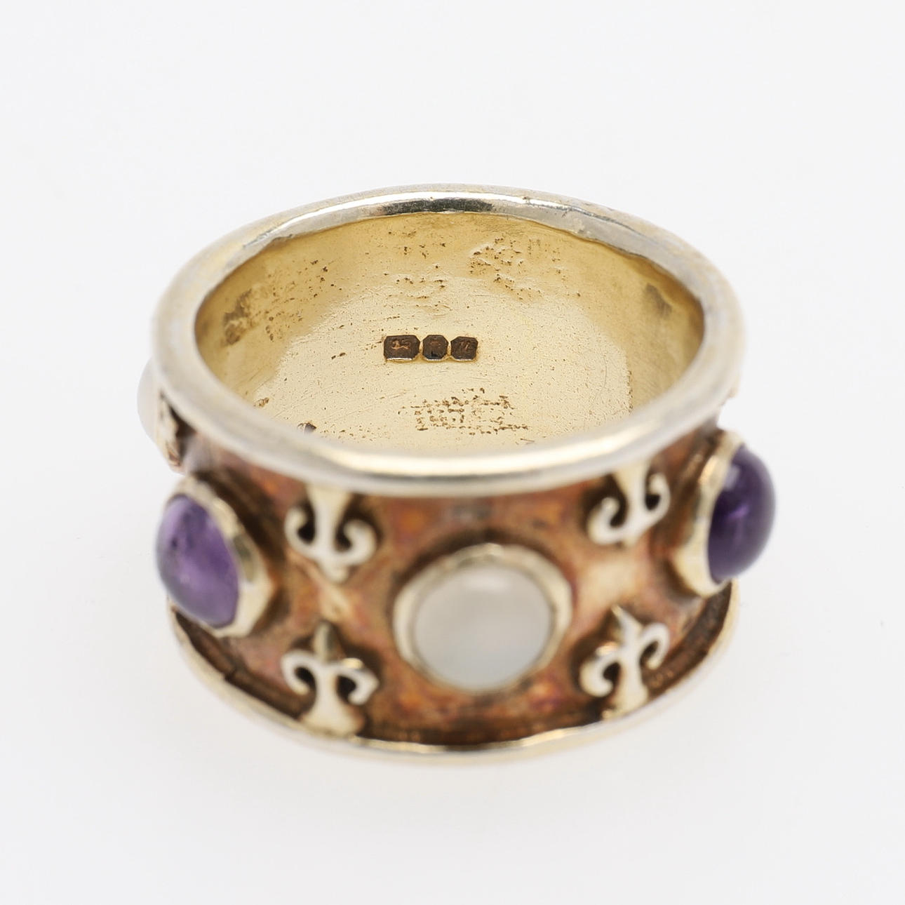 Silver with moonstones and amethysts, English hallmarks, size 18, weight 10.6 grams.