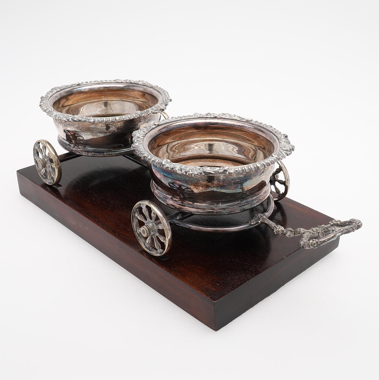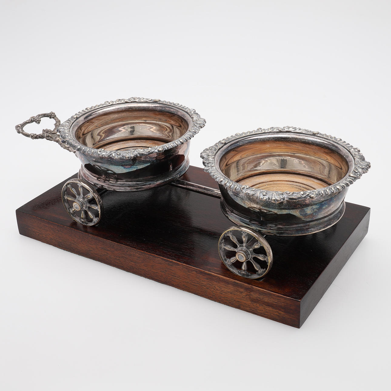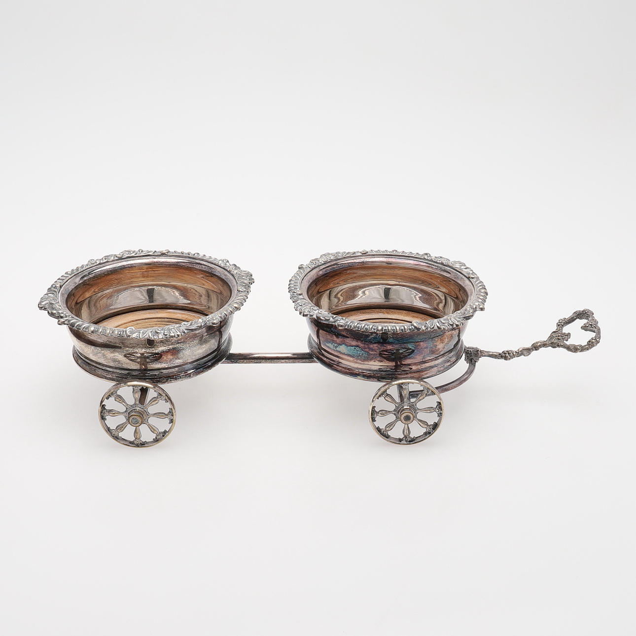 CHAMPAGNE TROLLEY FOR TWO BOTTLES, WITH PEDESTAL.