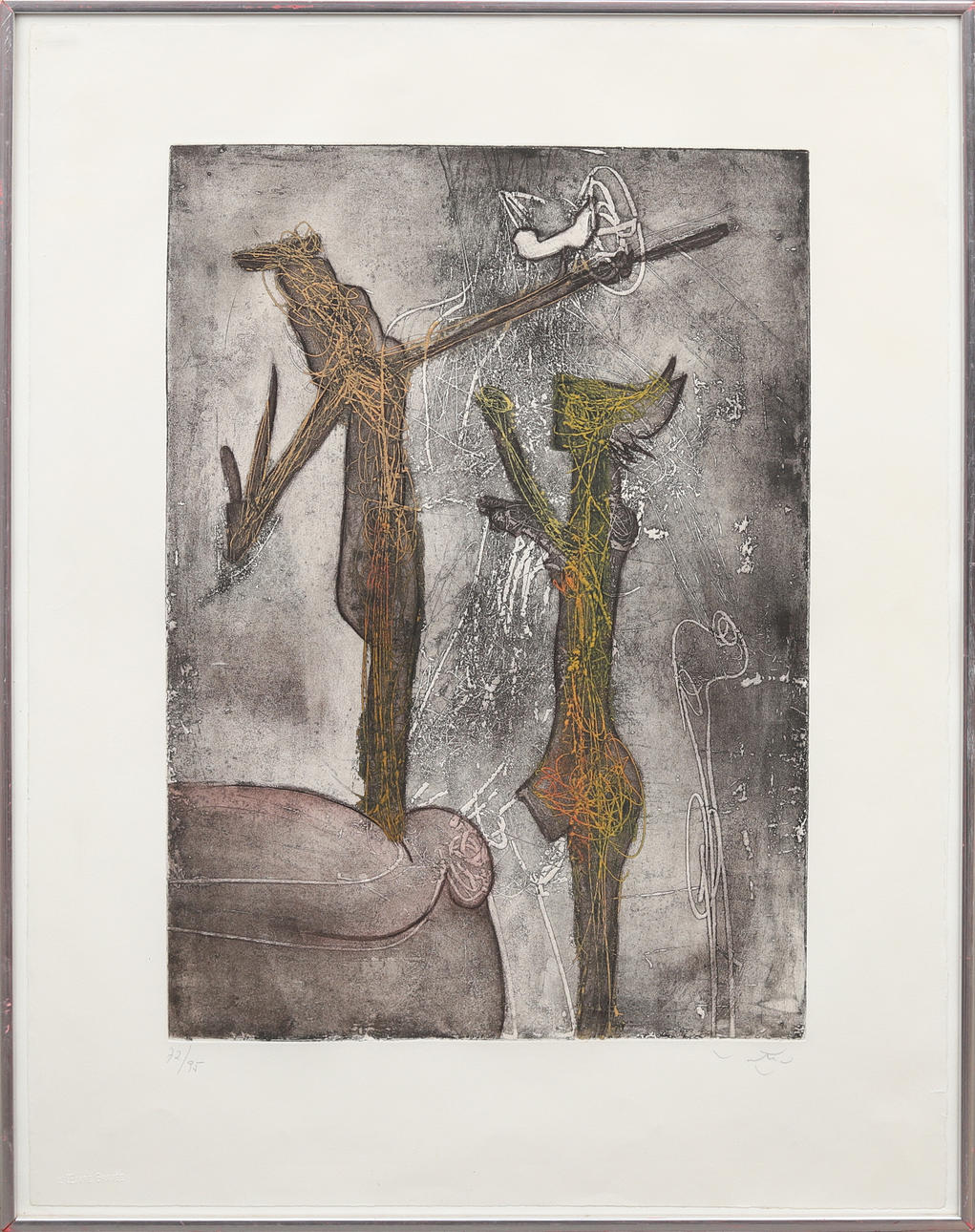 1977977. ROBERTO MATTA. Composition with figures, color etching no. 72/95 signed.