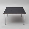 From the 1969-70 IKEA catalogue: "® FERRO. Sheet of graphite gray compresin, a hard compressed wood fiber plate with a hard surface layer. The legs are chrome-plated steel tubes. Ferro is 70X70 cm and 40 cm high.".