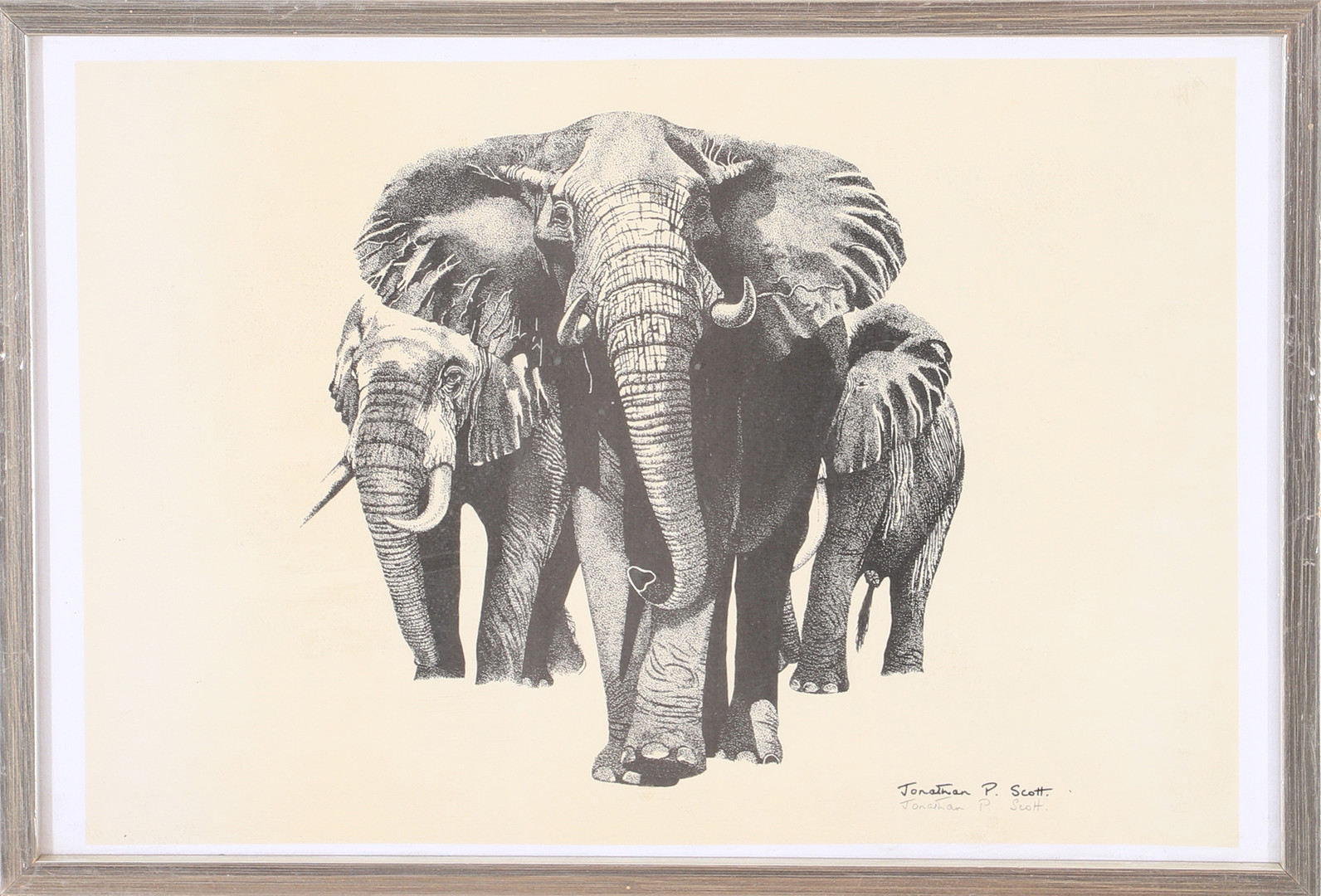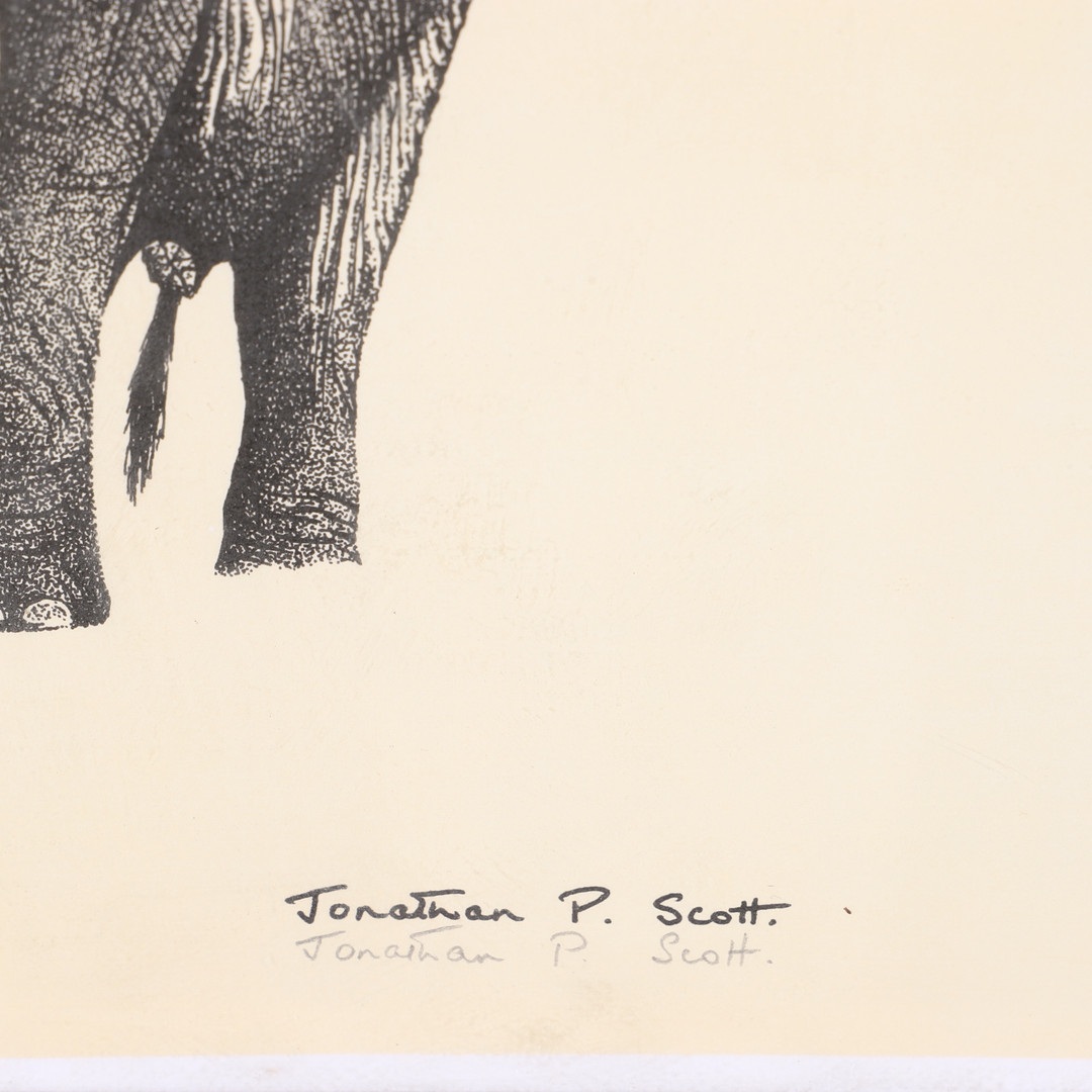 1980112. JONATHAN PRESTON SCOTT. Elephants, signed print.