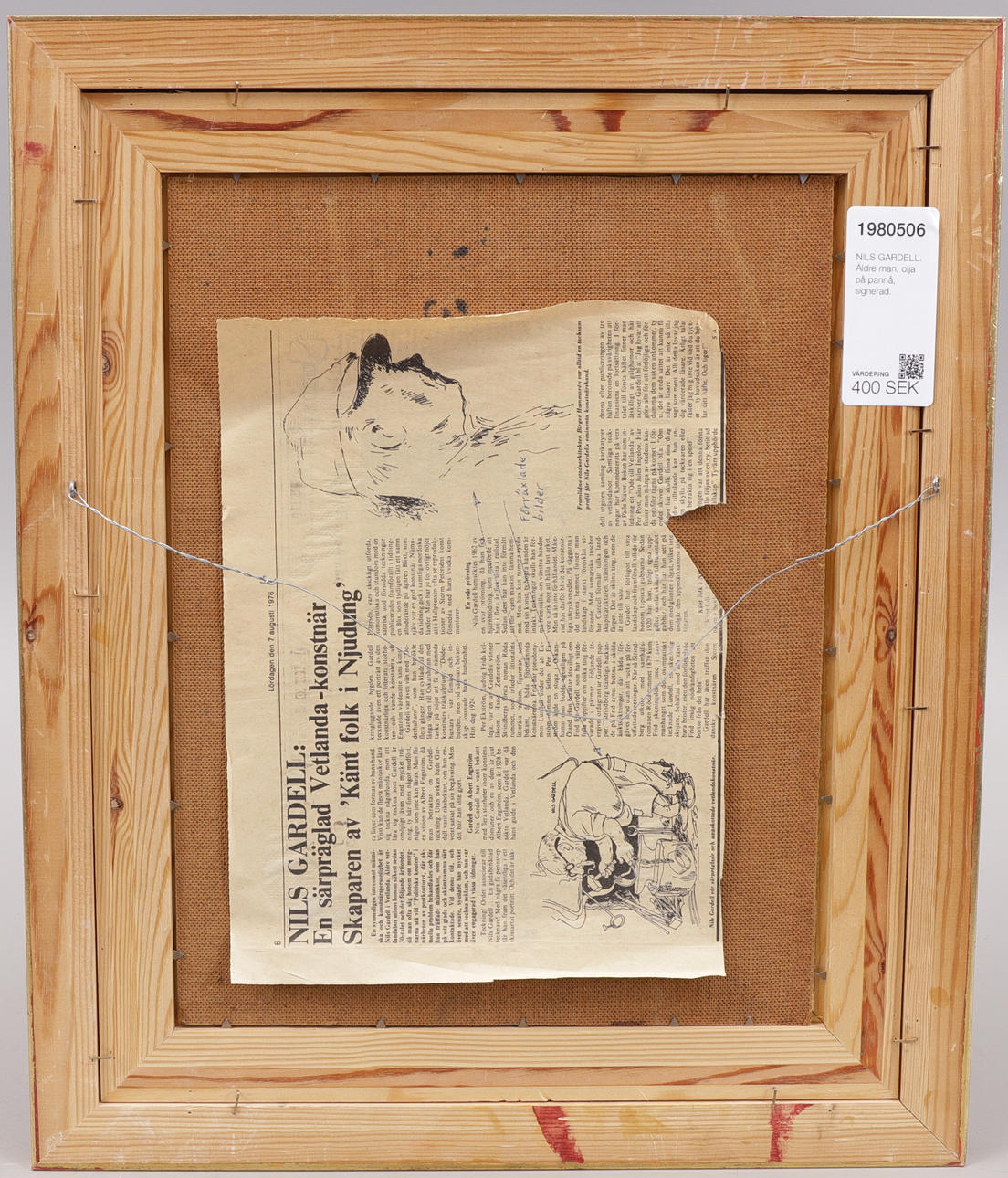 1980506. NILS GARDELL. Elderly man, oil on Board, signed.
