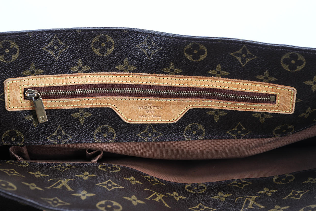 Monogram canvas with leather details, marked LOUIS VUITTON PARIS Made in France. Dimensions approx. 36x52x17 cm, no date code (before the 80s). An internal mobile phone pocket, an internal zipped pocket.