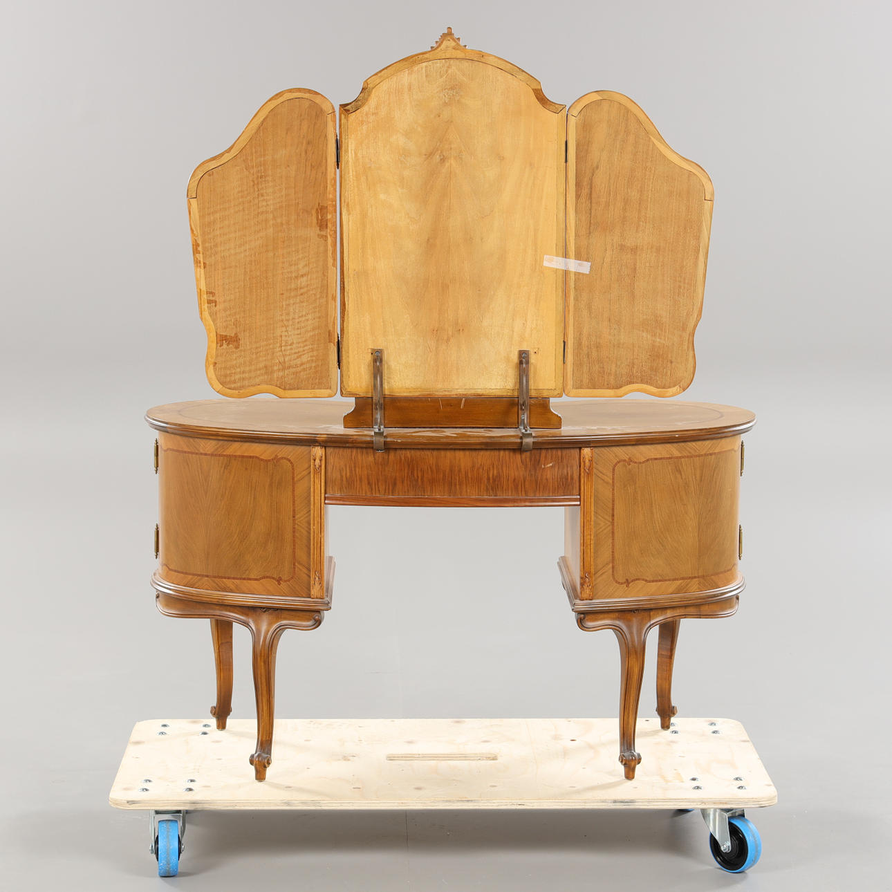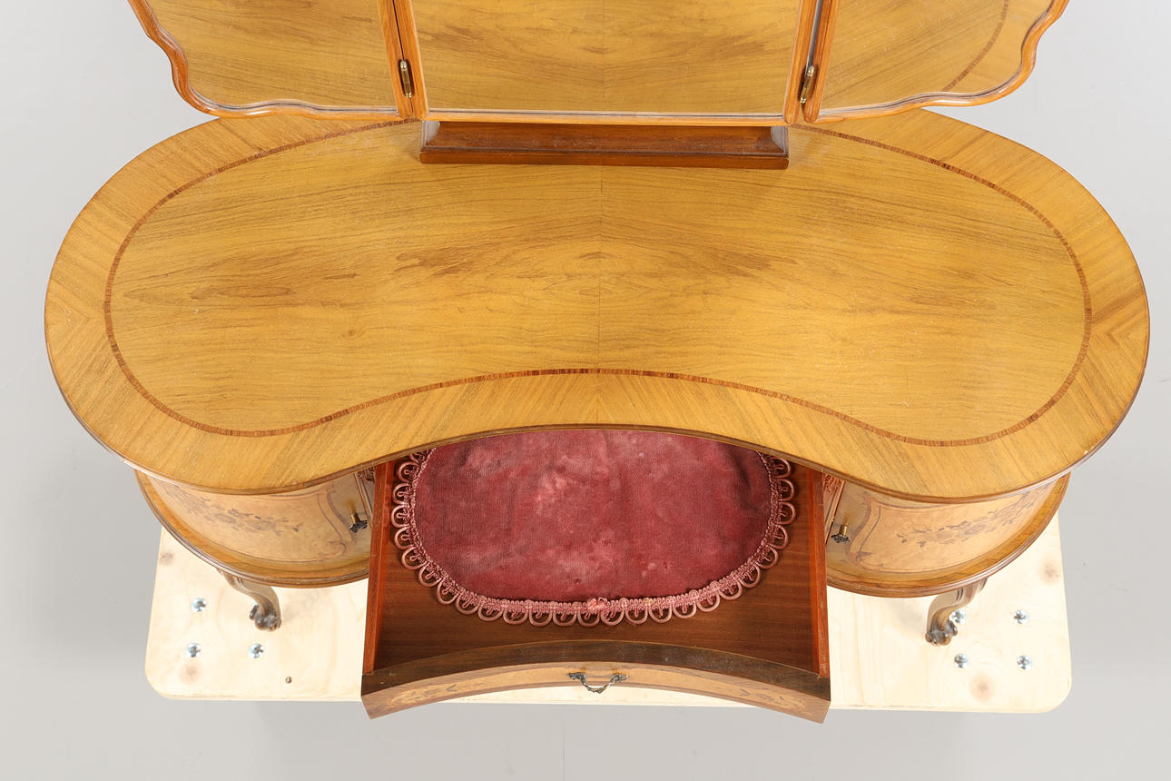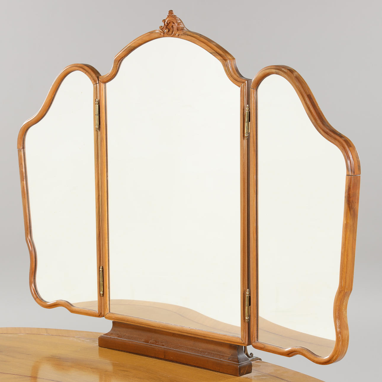 3-part mirror, 1 drawer, mahogany, decorated with flowers, height approx. 136, 114x50 cm.