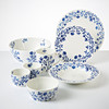 11 coffee cups, 6 tea cups, 8 dinner plates, 7 deep plates, 8 plates, 5 smaller bowls and 1 larger bowl.