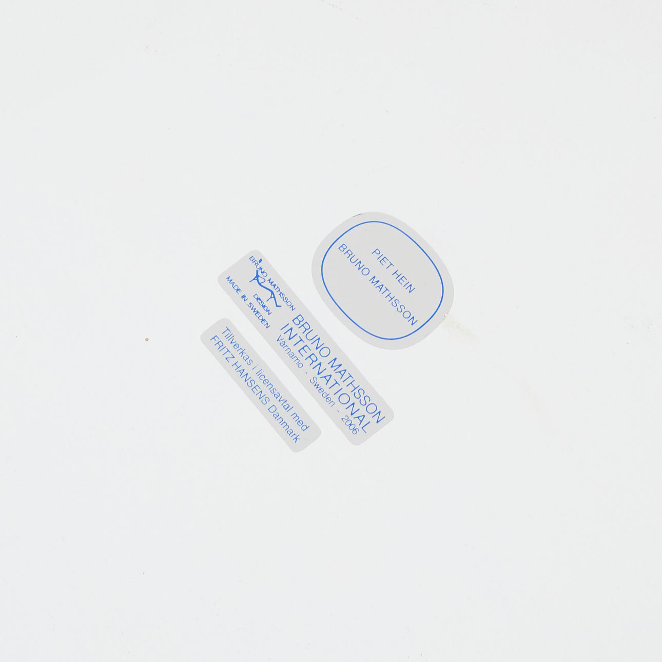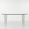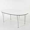 1991852. BRUNO MATHSSON. Superellips", dining table, Mathsson International, white lacquered top, 4 chrome legs, black edge, label marked "PIET HEIN BRUNO MATHSSON" as well. "BRUNO MATHSSON INTERNATIONAL MADE IN VÄRNAMO SWEDEN.