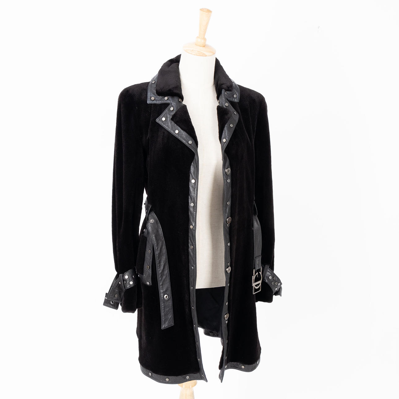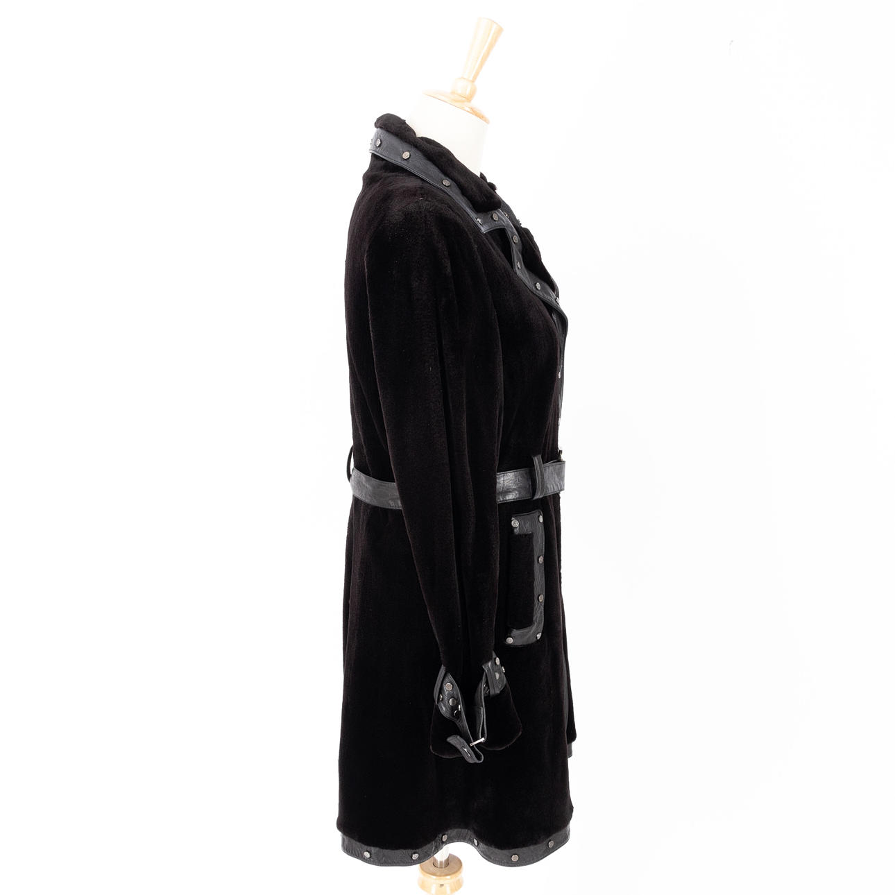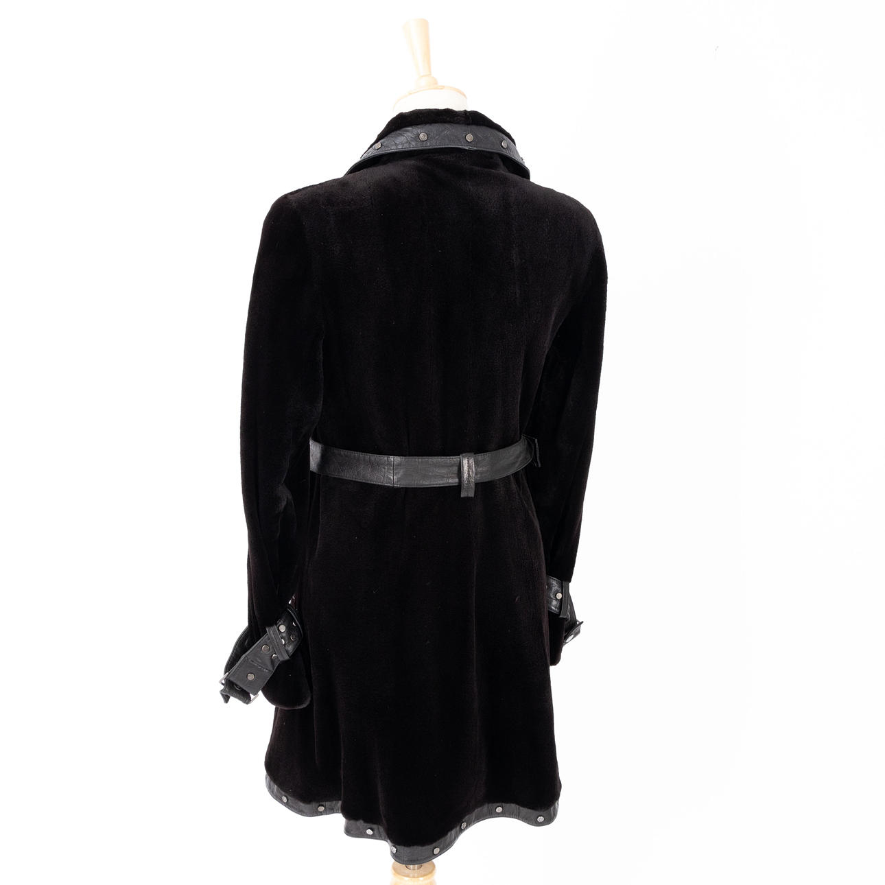 Mink fur and leather, belt, size 44 (FR), shoulder width 43 cm, sleeve length 45 cm, back length 90 cm.