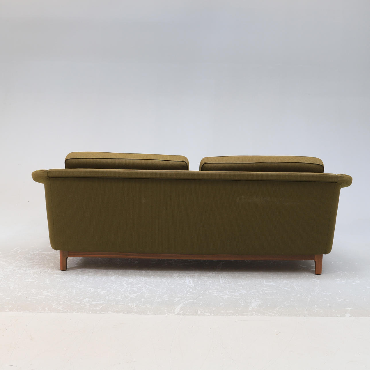 2-seater sofa covered in dark green textile, loose feathers in back and seat. Length approx. 195, back height approx. 66 cm.