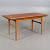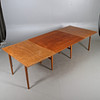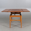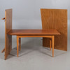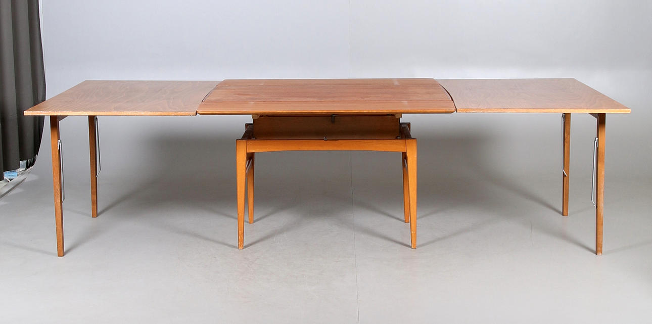 With two pull-out discs. Length 116, width 58, height 56 - 71 cm. pull-out boards each width 28 cm.
