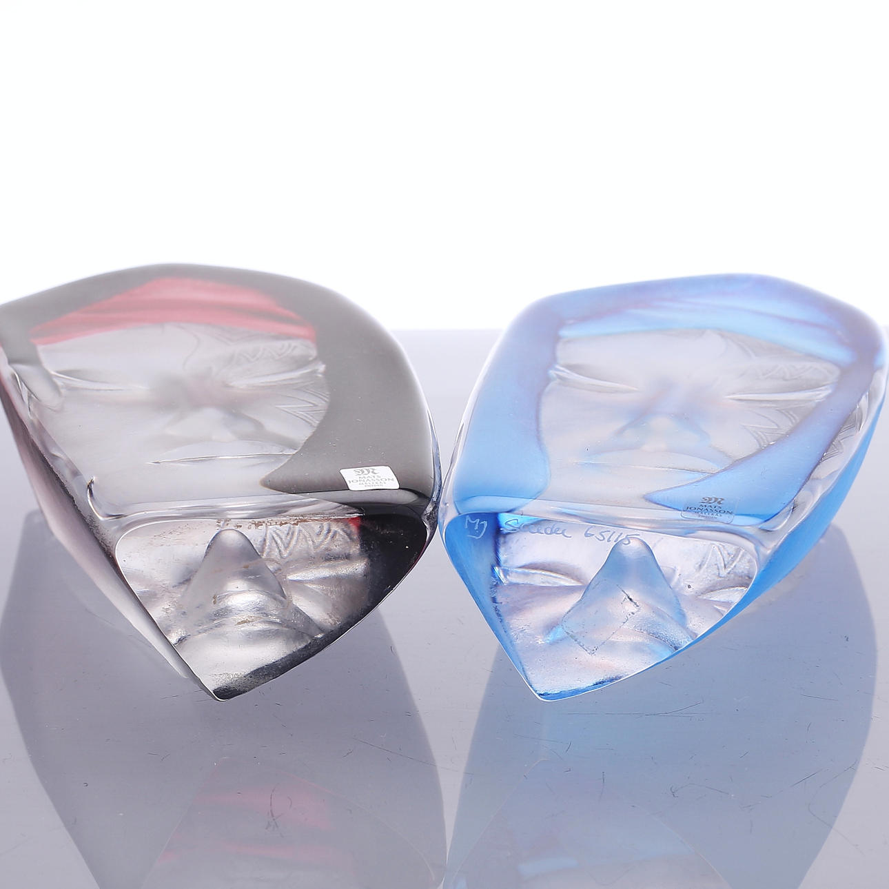 MATS JONASSON. "Batzeba", glass block, 2 pcs, Målerås, signed.