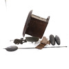 the 7" white dial with blue chapter ring, Roman numerals, in a turned wooden surround, striking on a bell, and with two associated weights, 27.5cm diameter.