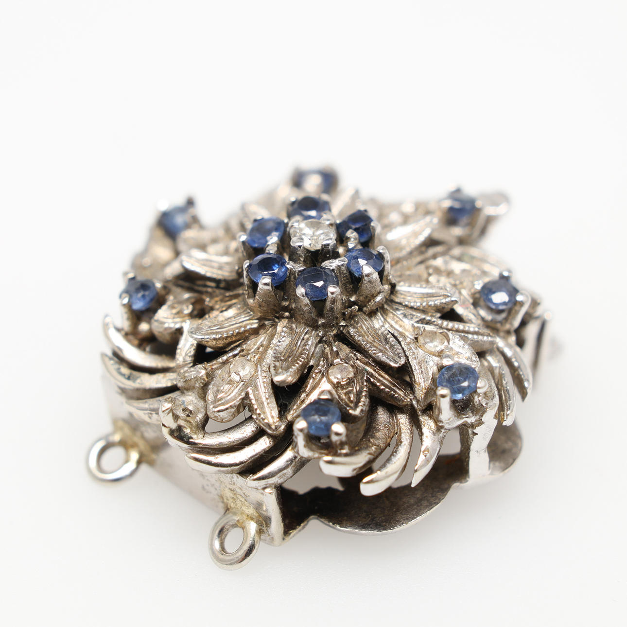 For two-row collier, casket lock, set sapphires and Cubiz Cirkona. H approx. 19 mm. Weight 7.3 grams.
