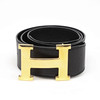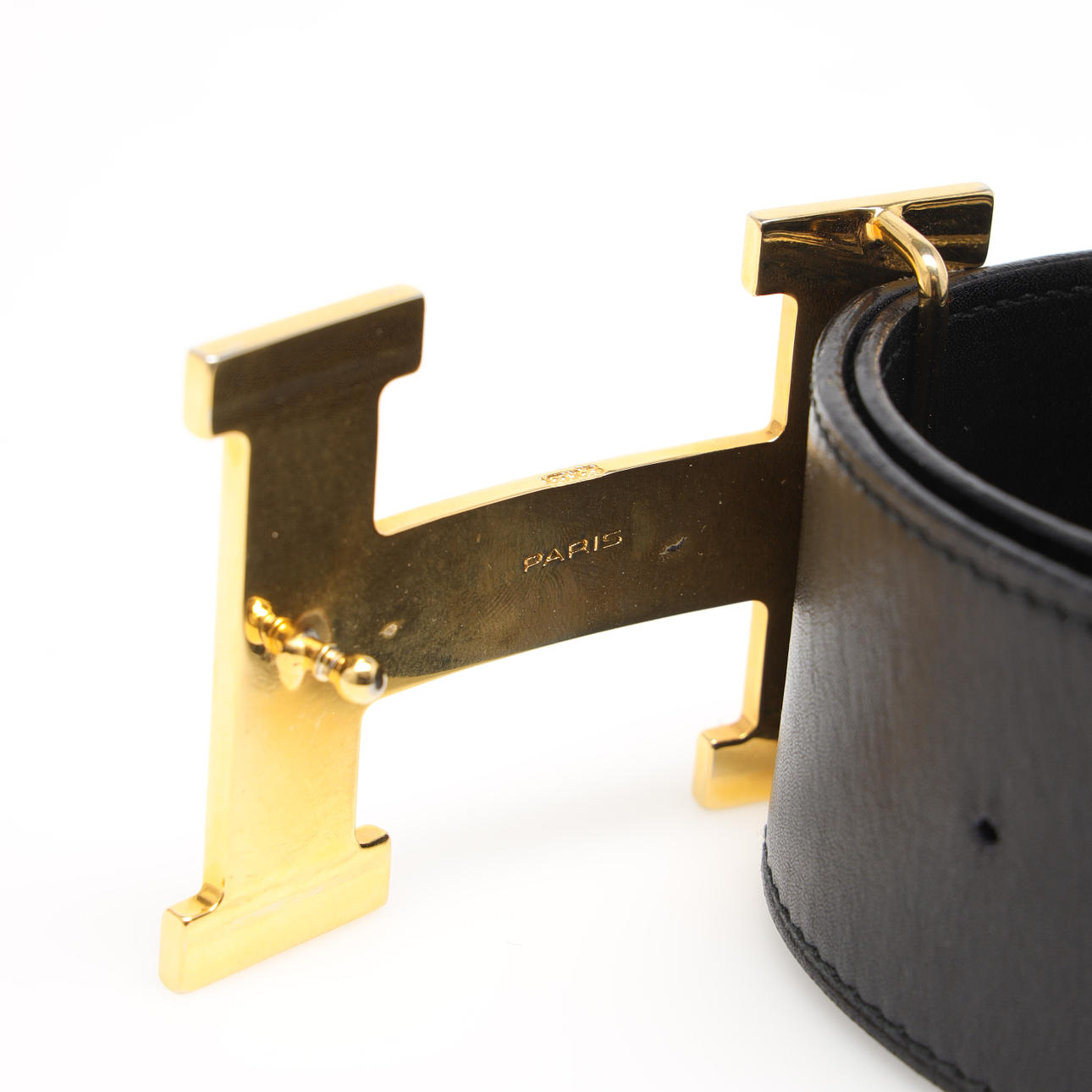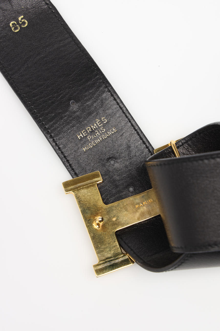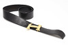 Belt in black leather with buckle in plated metal. Belt size 85 (waist approx. 70-90 cm) Total length approx. 102 cm, width approx. 5 cm.
