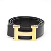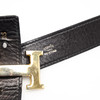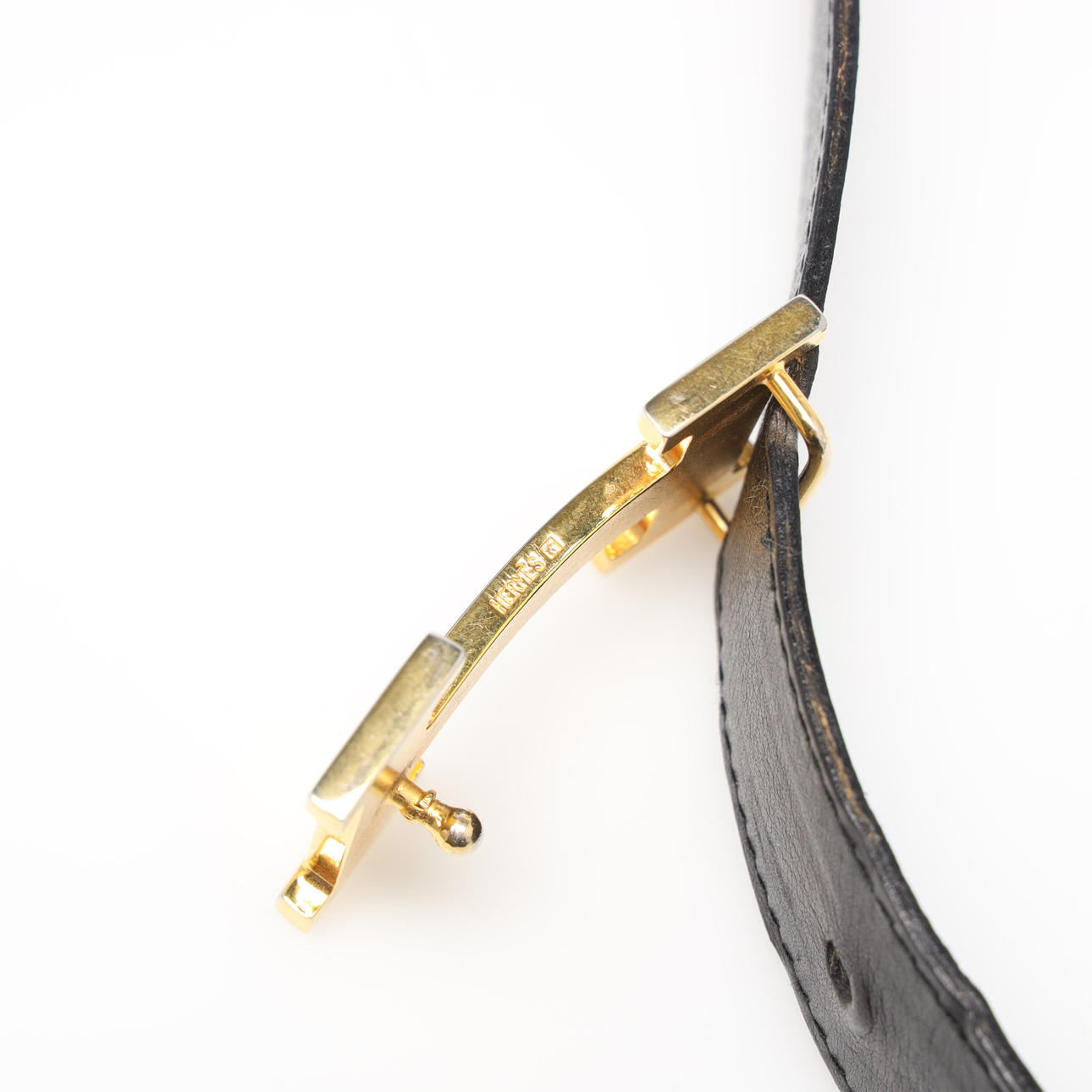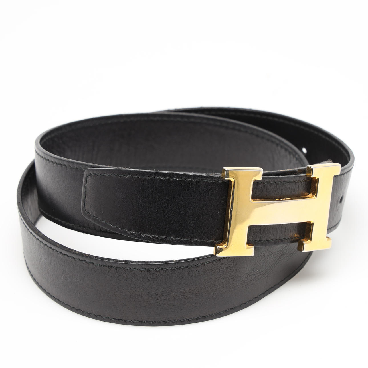 Belt in black leather with buckle in plated metal. Belt size 85 (waist approx. 75-87 cm) Total length approx. 98 cm, width approx. 3 cm.