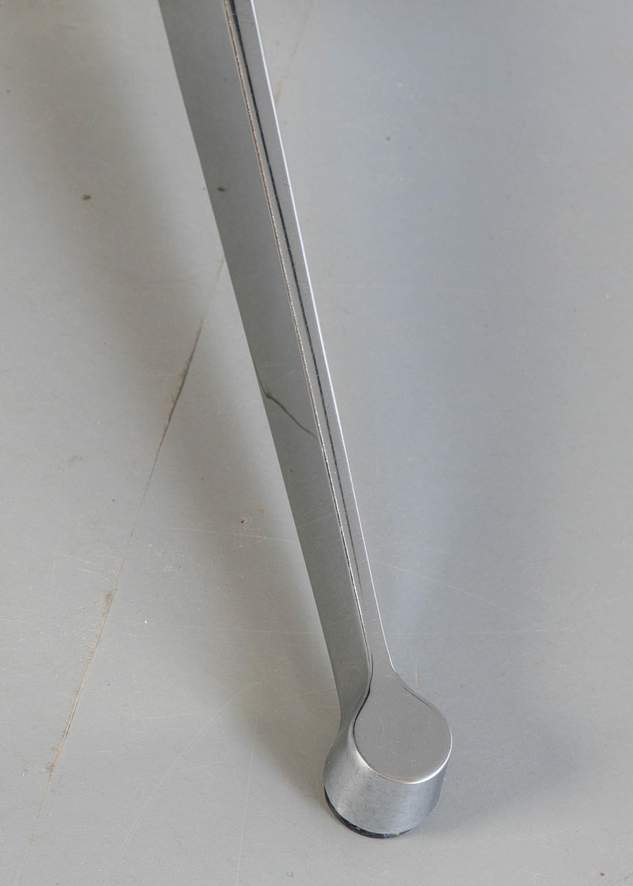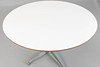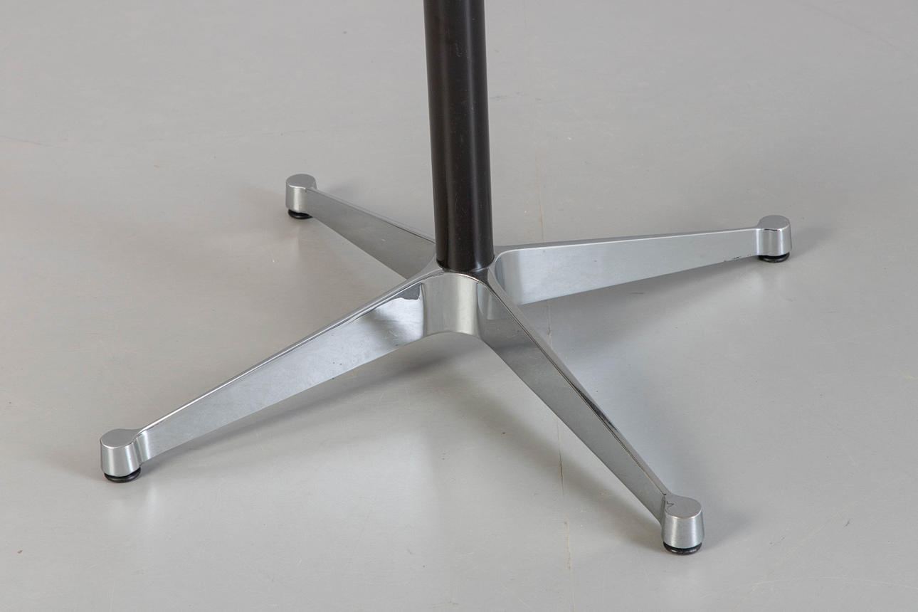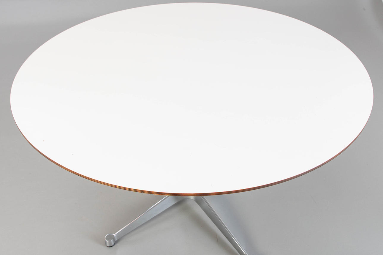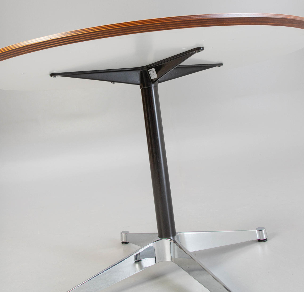 'Contract Base' chromed and black cast aluminum base. Marked with sticker by Vitra. The table top is not from Vitra, mounted later. Laminated white. H. 71cm, Ø 115cm.