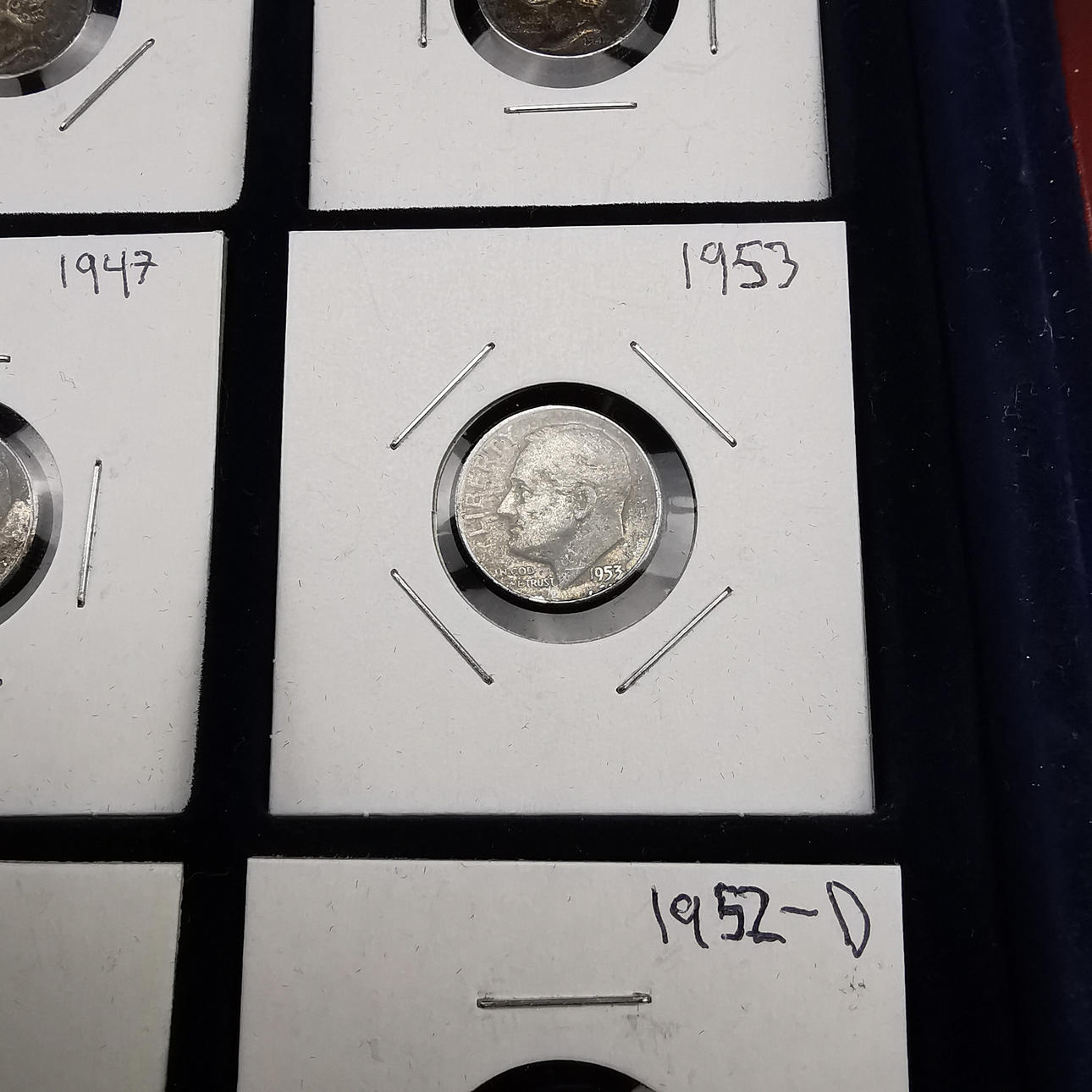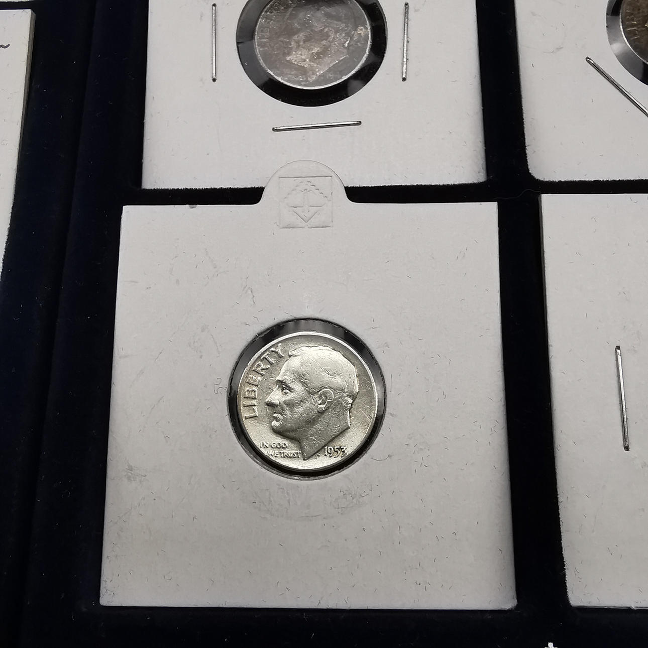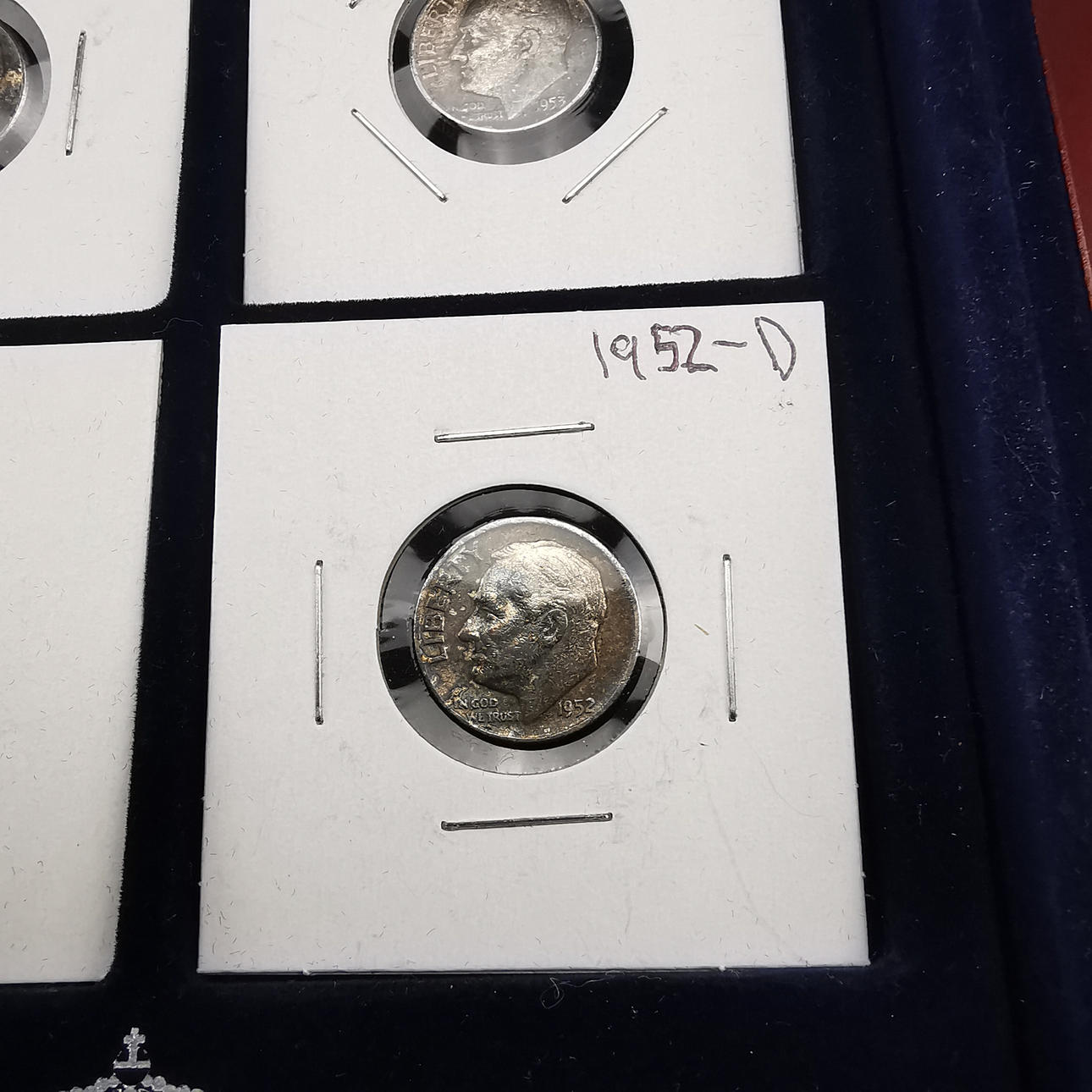 The coins are in plastic pockets in a treasure chest measuring approx. 29 x 25 cm.