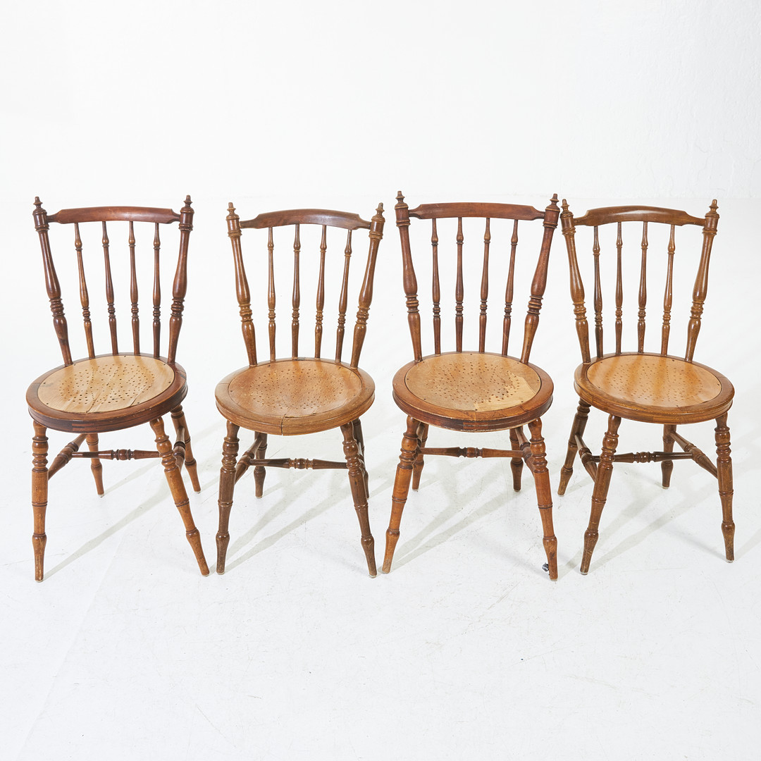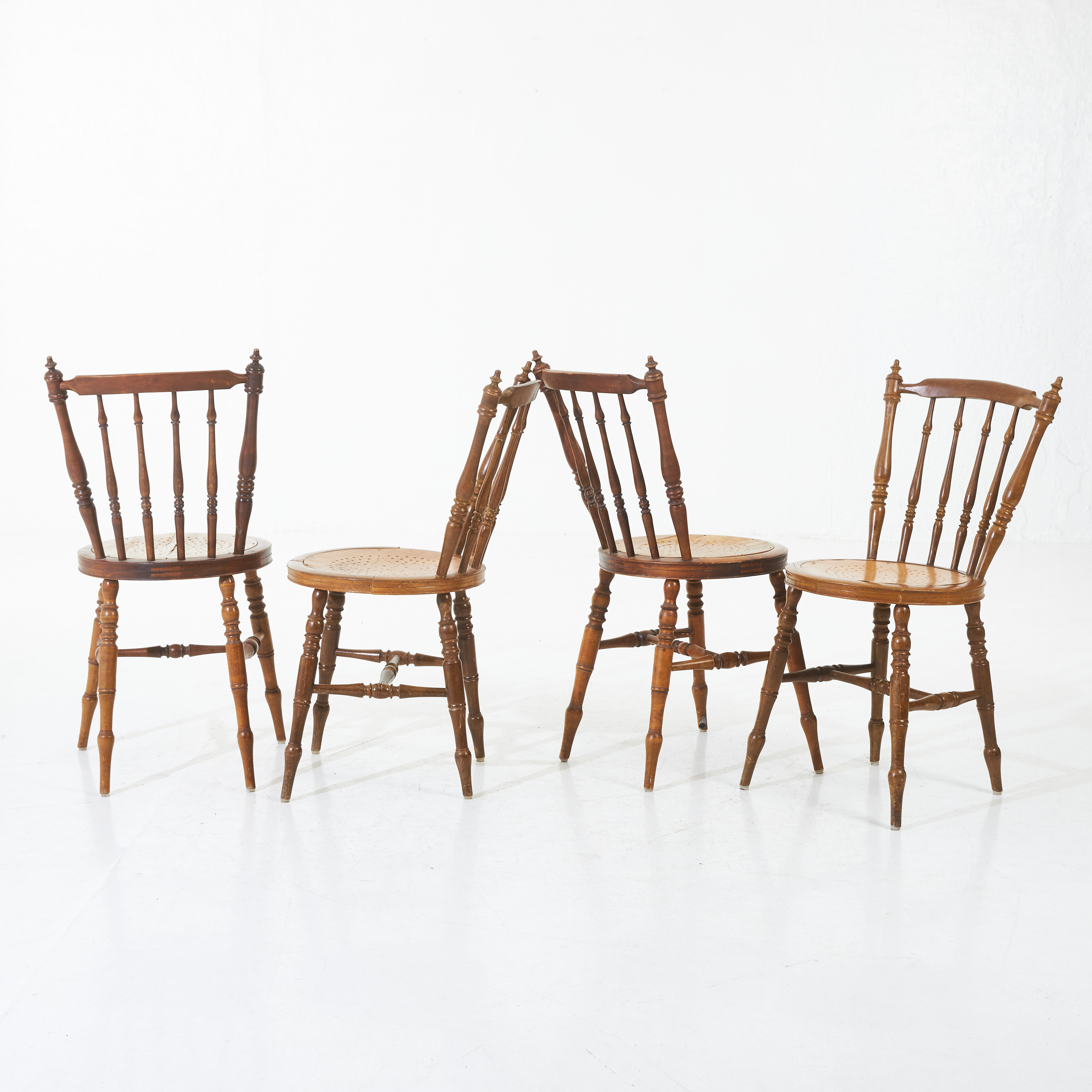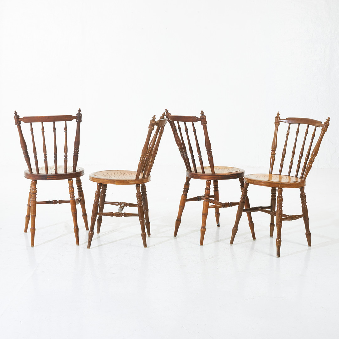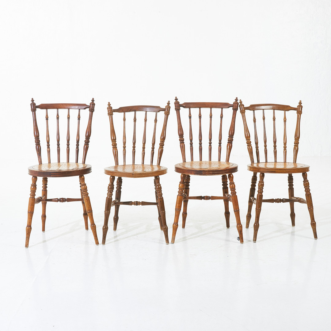 2018917. CHAIRS, 4 pcs, around 1900, turned parts, stained.