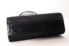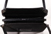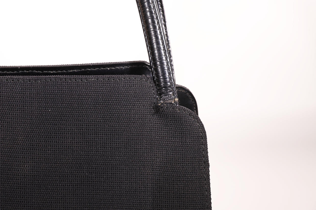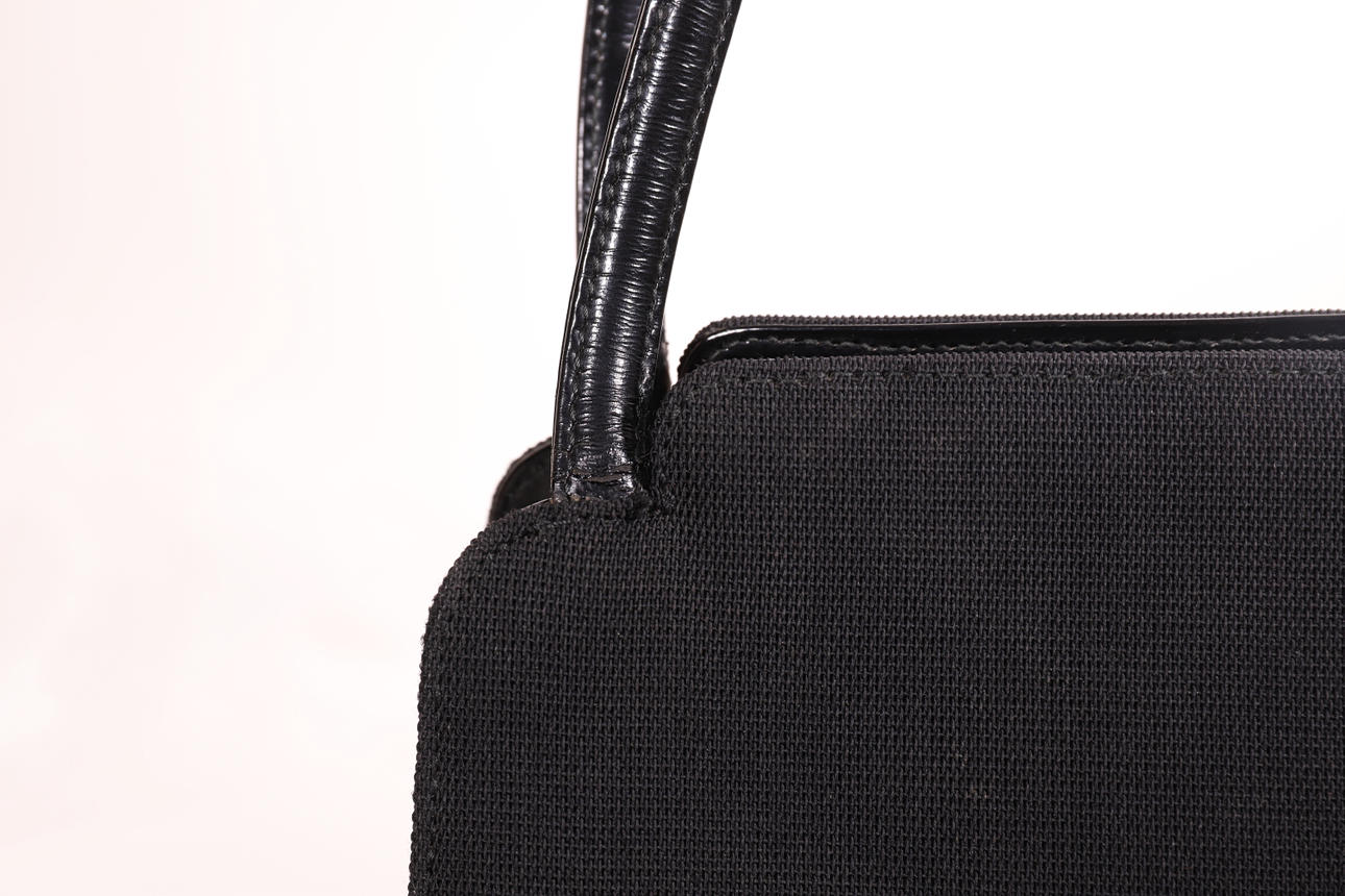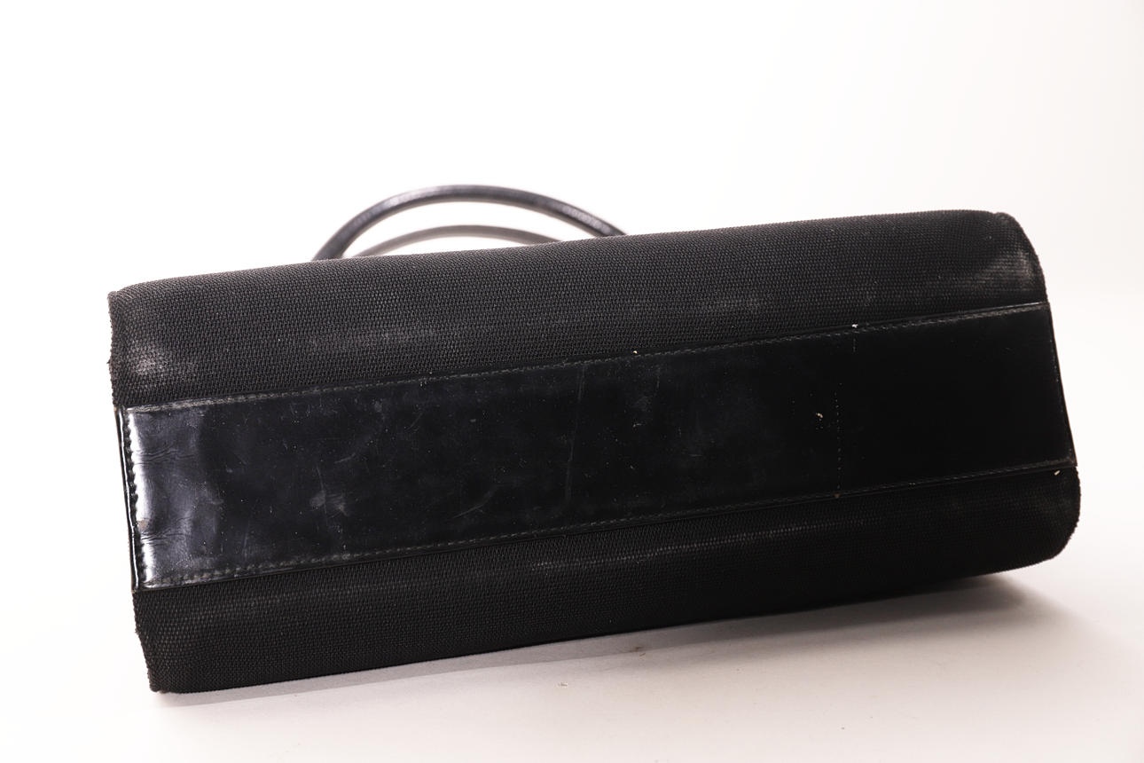Vintage model in black fabric with leather handles with matching logo Total measurements with handle: 44x30x10 cm.