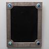 spot hammered, the four nailed overlaid corners inset with circular Ruskin hire fired discs, nailed above and below the mirror plate two plaques inscribed 'H W H H' and 'IX 1926', 59cm high x 45.5cm wide