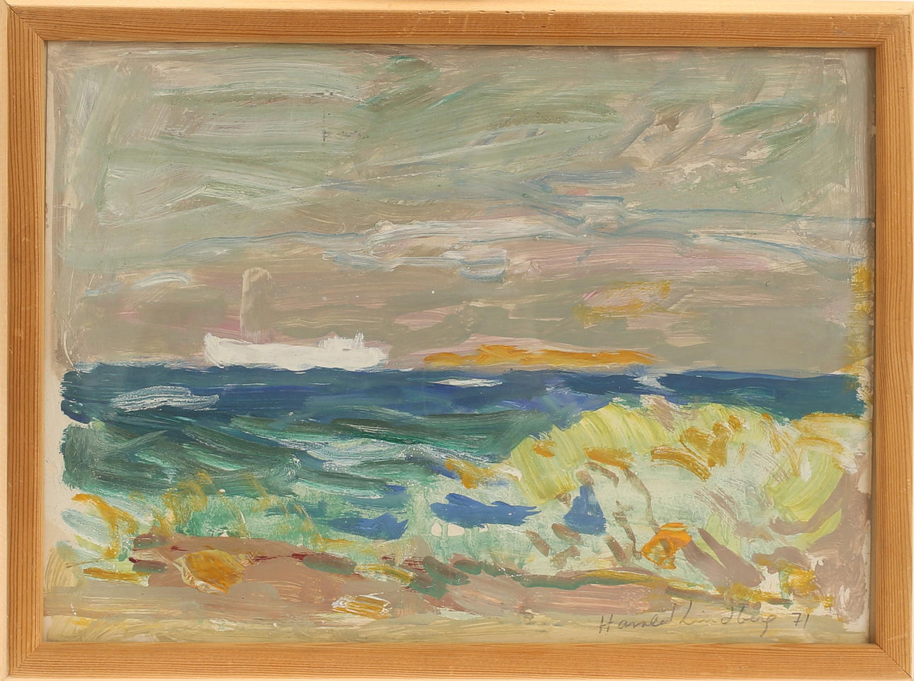 HARALD LINDBERG. Gouache, "White Steamer", signed.