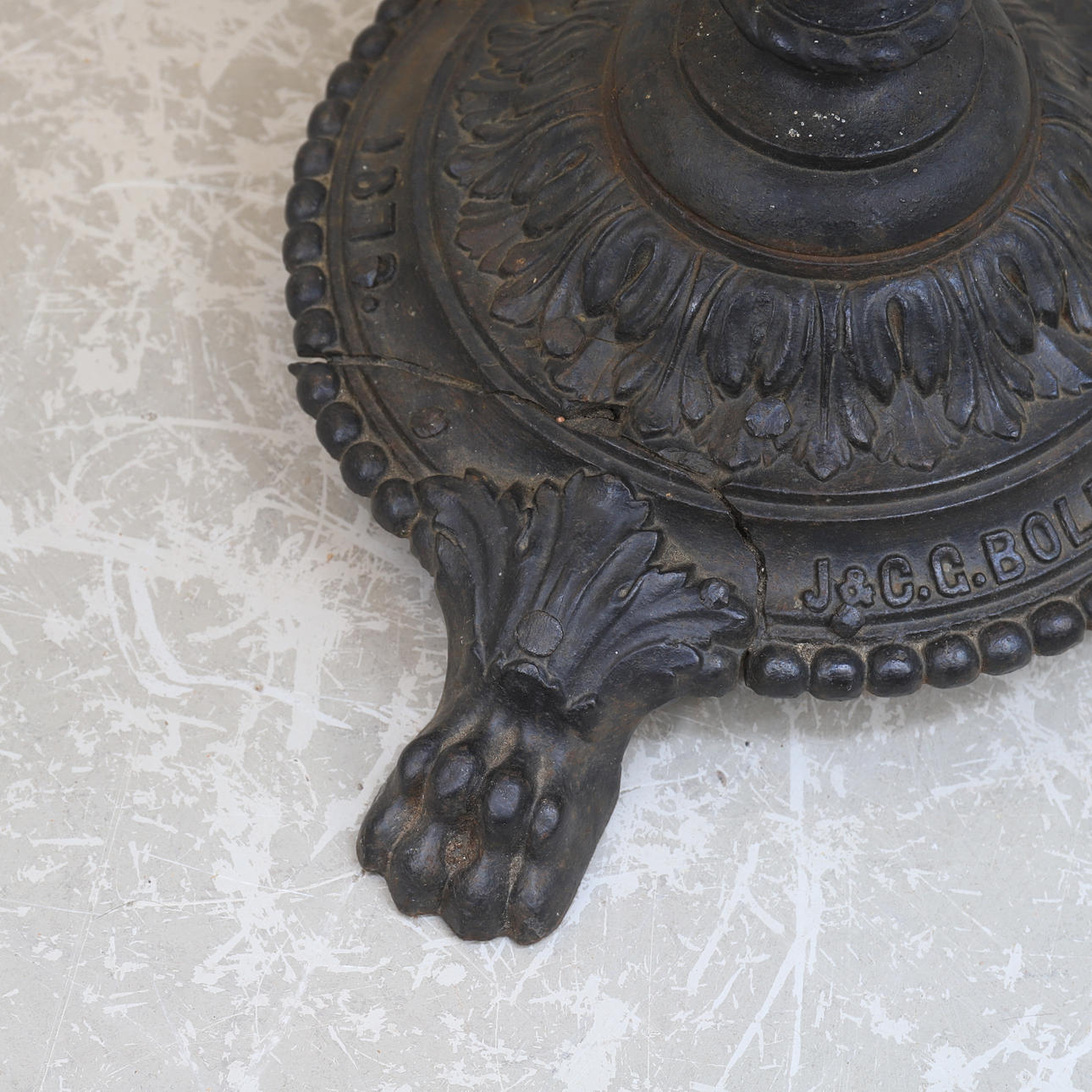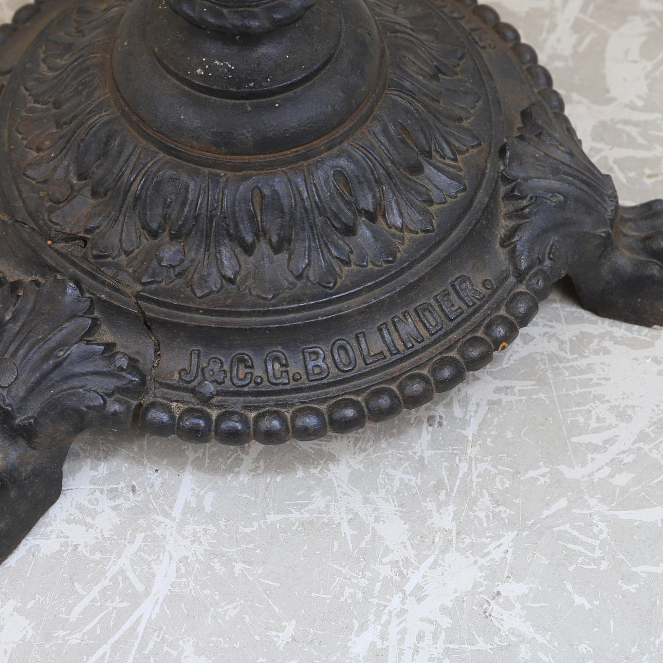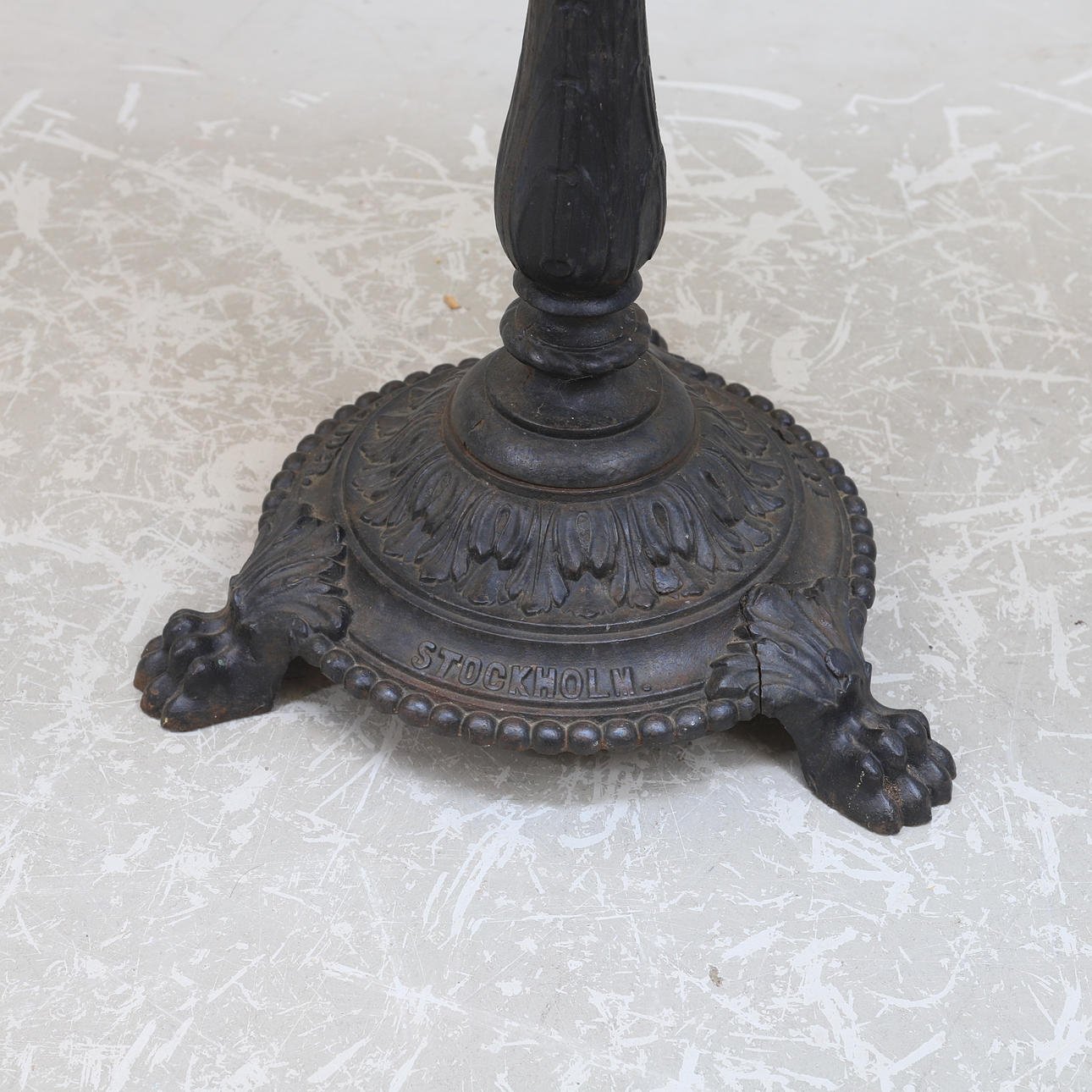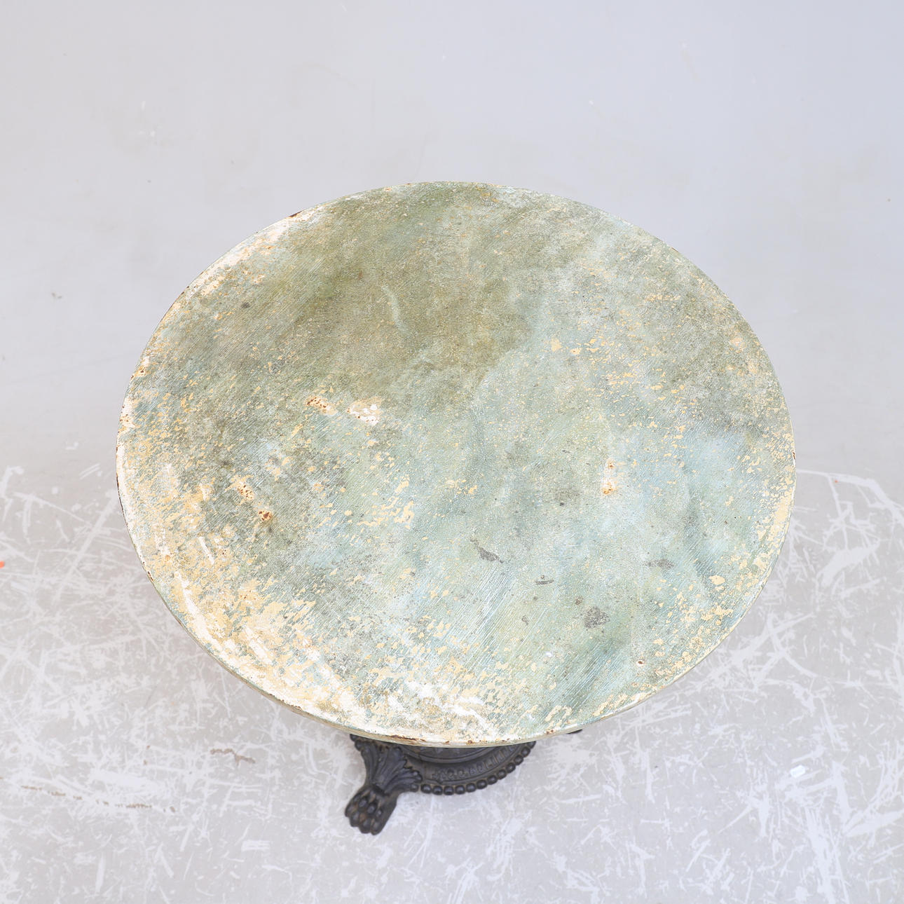 Height approx. 72 cm, diameter approx. 55 cm. Marbled painting on the table top.