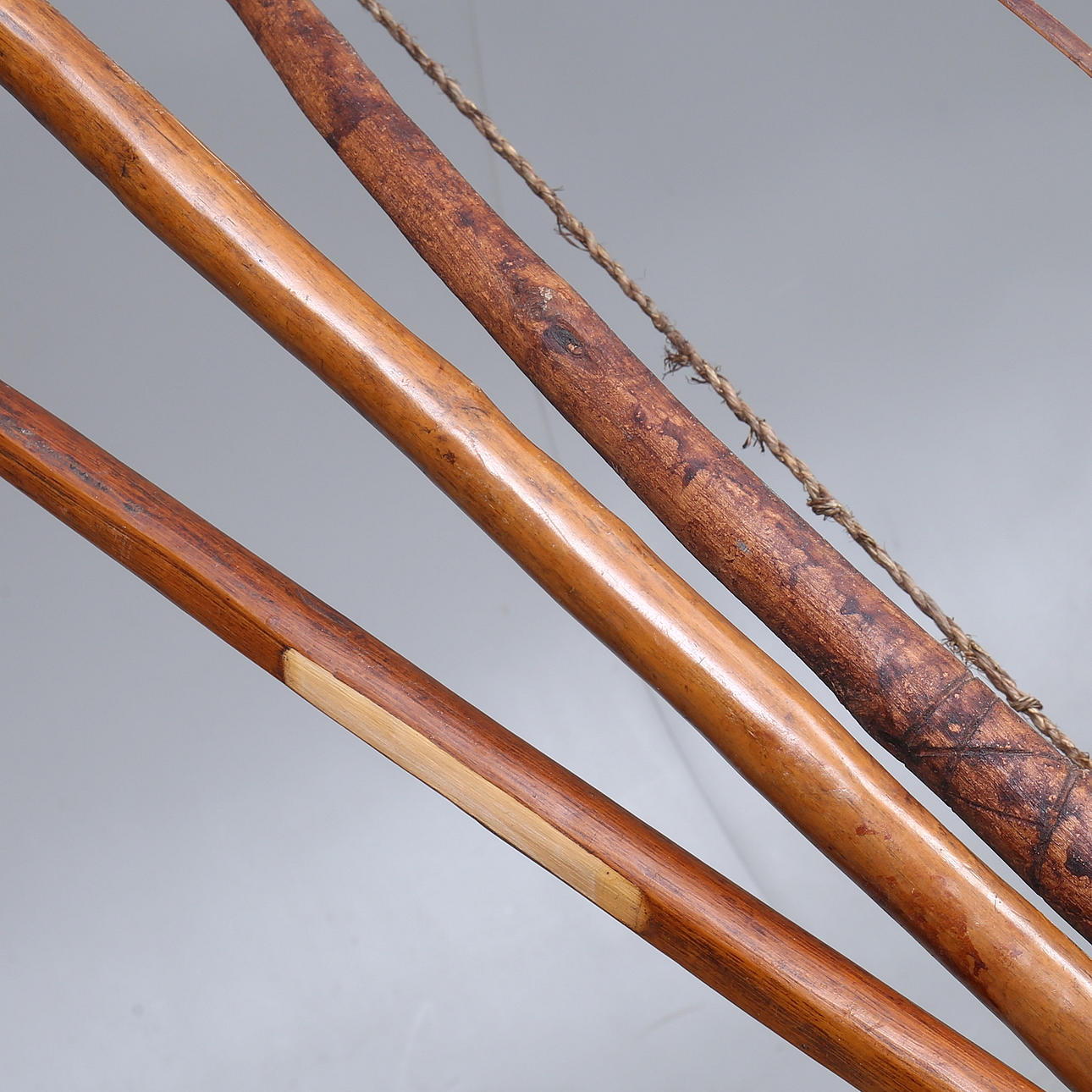 Spear with metal tip approx. 187 cm. Spear with wooden tip approx. 147 cm. According to an heir, purchased in connection with UN service in the Congo in the late 50s.